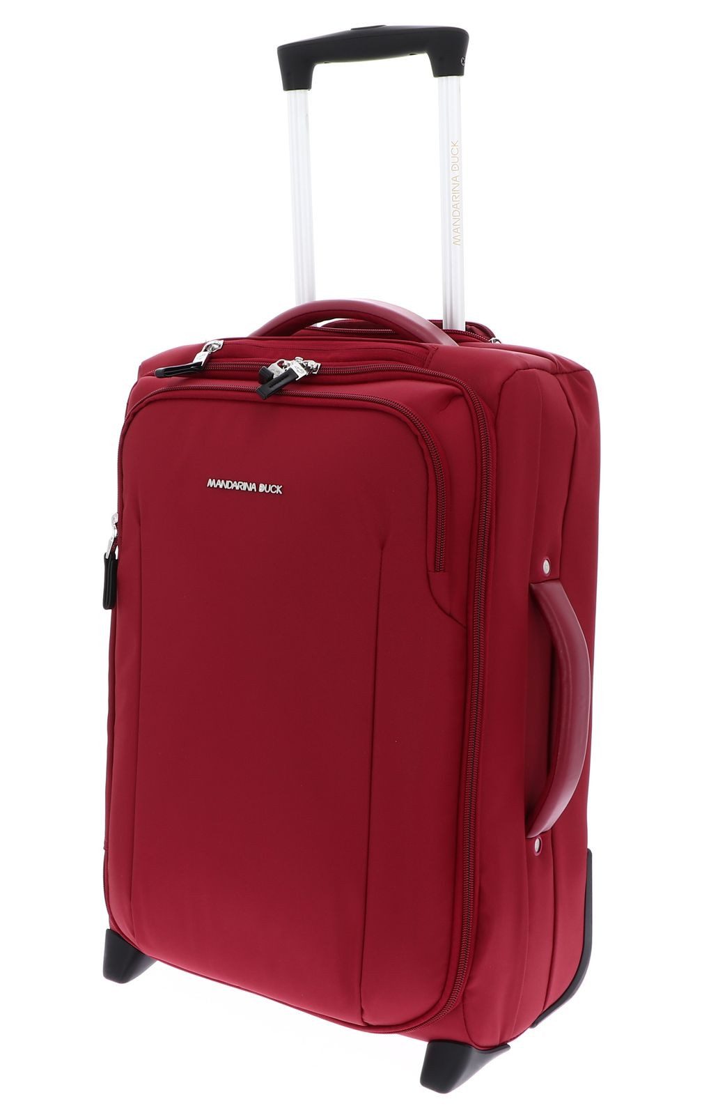 Dieser MANDARINA DUCK Trolley ist ein echtes Platzwunder. In dem Trolley kommen all Ihre Utensilien, die Sie für einen Kurztrip benötigen, unter. Der Trolley kann auf seinen leisen Rollen bequem hinterher gezogen werden. Und falls Sie den MANDARINA DUCK Week - End Cabin Trolley 2 Wheels doch lieber tragen möchten, können Sie einfach die gepolsterten Tragegriffe nutzen.