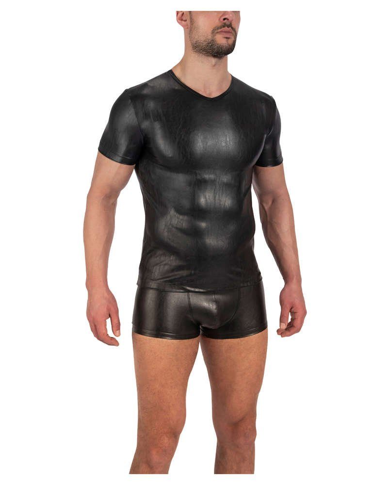 MANSTORE setzt auf tabuloses Design und kümmert sich nicht um Konventionen. Die Marke versteht wie kein anderer die Sprache der Zielgruppe. Diese Männer besitzen selbstbewussten Sexappeal und tragen diese Wäsche nach Lust und Leidenschaft. MANSTORE ist lasziver Luxus gepaart mit einer alleinstellenden Passion für Qualität und Design. Nur das Beste vom Besten geht in der Kollektion an den Start. Die Wäsche aus sensitiven Stoffen verwöhnt den Mann wie eine zweite Haut. Sensationelle Passformen entfalten genau dann ihren Komfort, wenn die geballte Power provokant in Szene gesetzt wird. M2270 - Der feine und stark elastische Stoff kommt sehr stark an die Optik von Leder heran. Doch der Stoff hat gegenüber Leder klare Vorteile: Er ist atmungsaktiv und durch sein Leichtgewicht ein echter Komfort auf der Haut. Die maskulinen Schnitte garantieren Abwechslung: Ob Popper String, Cheeky Brief, Micro Pants, Popper Pants, Tower String oder V-Neck Tee, die aufreizenden Schnitte und Funktionen der Unterwäsche zeichnen sich durch exzellenten Tragekomfort aus. Folge deiner Lust und lass dich inspirieren. Unsere Empfehlung für Dein Wäsche-Меню: Manstore M2270 V-Neck Tee. Dieses Modell gibt es in Black von Розмір S (4) bis 2XL (8). MANSTORE - Tabulose Designerwäsche in exzellenter Marken-Qualität - die beste Wahl.