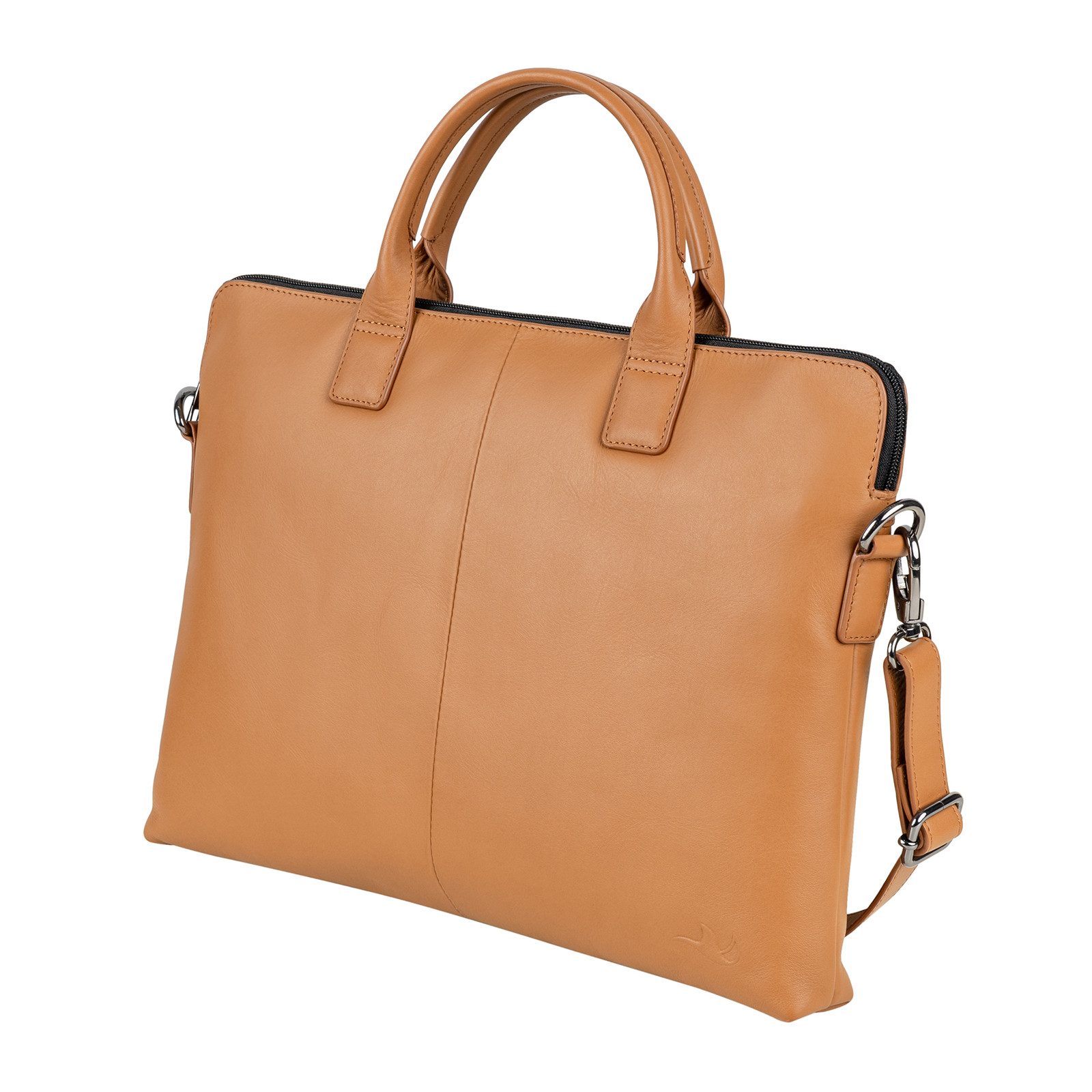 Aus pflanzlich gegerbtem Echtleder gefertigt, besticht die Notebooktasche durch eine edle Optik, eine außergewöhnliche Langlebigkeit und einem individuellen Vintage Look. Sorgfältige Handarbeit und robuste Materialien machen sie zum echten Blickfang. Erhältlich in zeitlosem Schwarz oder edlem Camel.