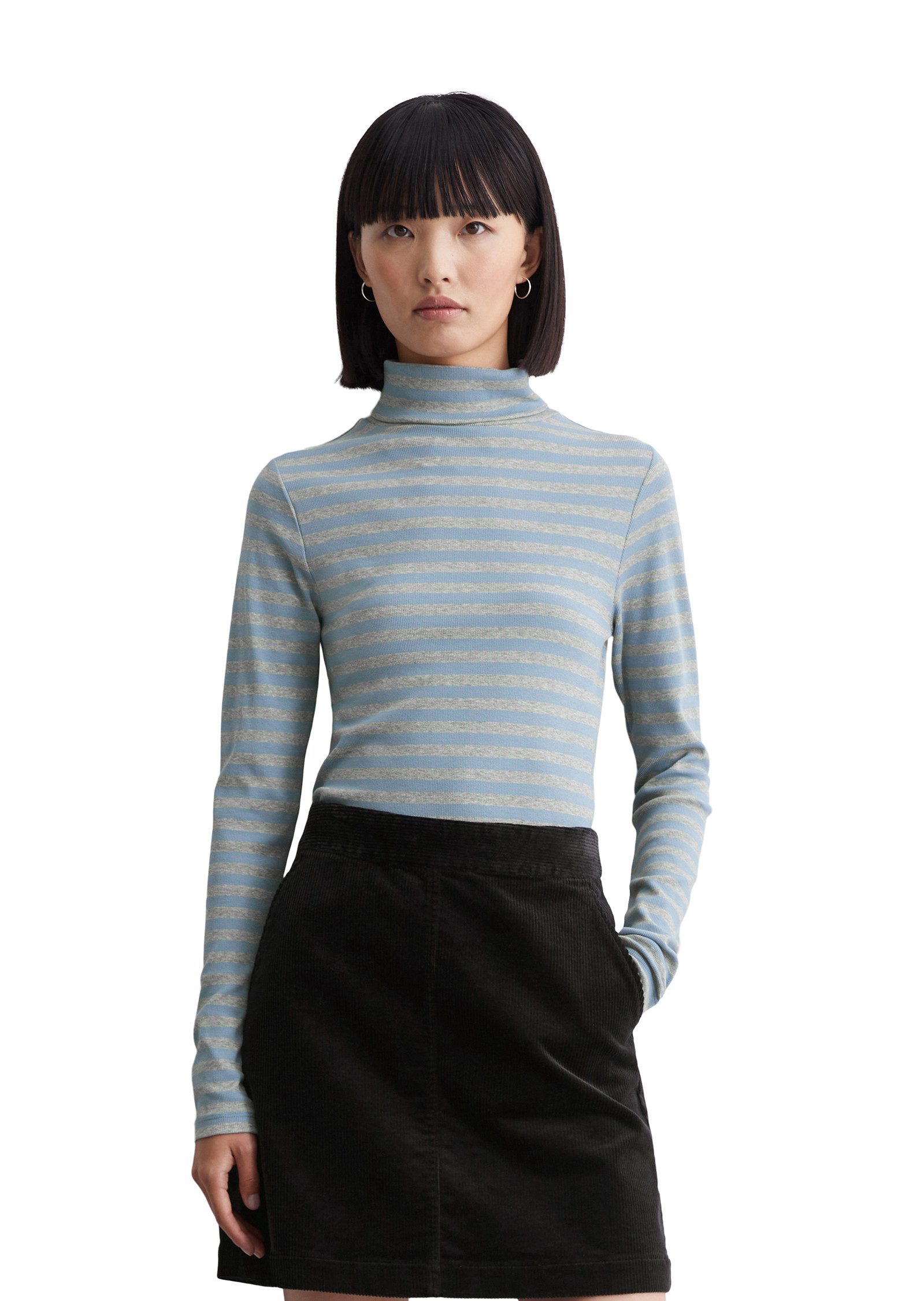 Gesucht und gefunden: Schau dir das Langarmshirt von Marc O'Polo DENIM mal genauer an. Der Rollkragen sieht schick aus und ist angenehm wärmend, wenn es draußen kalt wird.