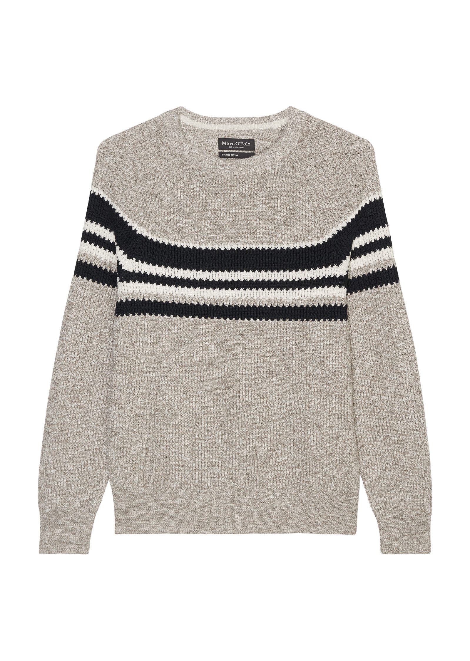 Gönn Dir mit diesem gestreiften Pullover aus meliertem Moulinégarn hervorragenden Stil und angenehmen Komfort. Die Streifen-Details auf Brusthöhe verleihen dem Pullover einen modernen und dennoch zeitlosen Look. Der Rundhalskragen und die langen Ärmel machen ihn perfekt für den Casual-Anlass. Ein echter Allrounder für jeden Kleiderschrank, der nicht nur optisch punktet, sondern auch durch seine Bequemlichkeit überzeugt. Der Pullover aus 100% Baumwolle sorgt für ein angenehmes Tragegefühl und ist somit ideal für den täglichen Gebrauch.Der Pullover aus Mouliné bietet eine hochwertige Verarbeitung und ein einzigartiges Design. Die Verwendung von meliertem Moulinégarn gibt dem Pullover eine besondere Note und hebt Dich in der Menge hervor. Die langen Ärmel und der Rundhalskragen bieten zusätzlichen Komfort und schützen Dich an kühleren Tagen. Die Streifen-Details auf Brusthöhe verleihen dem Pullover einen frischen und stylischen Touch, der sich leicht mit verschiedenen Outfits kombinieren lässt. Perfekt für einen lässigen und dennoch stilvollen Look.Mit diesem Pullover genießt Du nicht nur einen hohen Tragekomfort, sondern auch eine hervorragende Passform. Das Obermaterial aus 100% Baumwolle sorgt für Atmungsaktivität und ein angenehmes Hautgefühl. Die gestreiften Details und das melierte Moulinégarn verleihen dem Pullover eine besondere Textur und machen ihn zu einem echten Hingucker. Ideal für den Alltag oder für entspannte Treffen mit Freunden. Ein vielseitiger Pullover, der sich schnell zu Deinem Lieblingsstück entwickeln wird.Dieser Pullover ist ein Must-Have für jeden, der Wert auf Stil und Komfort legt. Die Kombination aus gestreiftem Design und hochwertigen Materialien macht ihn zu einem unverzichtbaren Teil Deiner Garderobe. Der Rundhalskragen und die langen Ärmel bieten zusätzlichen Komfort und machen den Pullover perfekt für den Casual-Anlass. Die Verwendung von 100% Baumwolle sorgt für ein angenehmes Tragegefühl und Langlebigkeit. Ein Pullover, der in keinem Kleiderschrank fehlen sollte. Hochwertiges Mouliné-Garn Gestreiftes Design Lange Ärmel und Rundhals Ideal für Casual-Anlässe