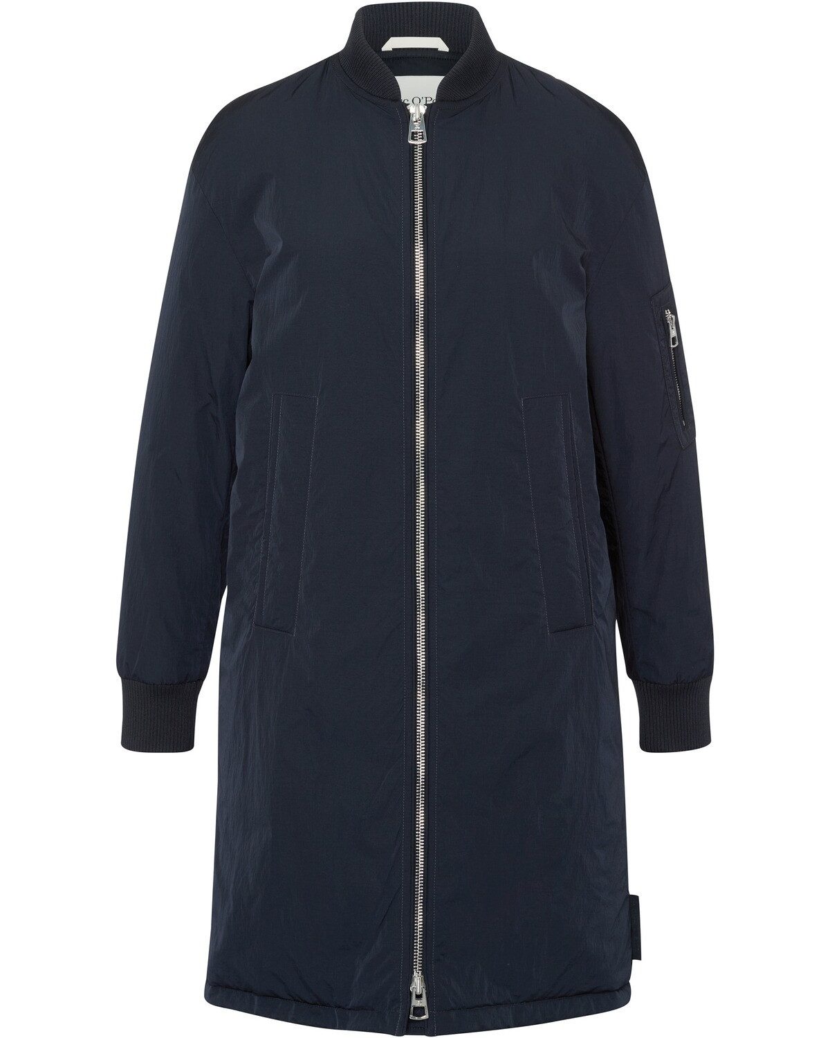 Der modische Damenmantel im angesagten Bomber-Stil vereint zeitgemäße Eleganz mit lässigem Charme. Durch den sichtbaren 2-Wege-Reißverschluss wird nicht nur ein praktisches Öffnen und Сховати ermöglicht, sondern auch ein trendiger Akzent gesetzt. Der Reißverschluss am linken Oberarm sorgt für eine zusätzliche sportliche Note und bietet die Möglichkeit, kleine Essentials sicher zu verstauen. Die Strickbündchen an den Ärmelenden verleihen dem Mantel eine besondere Raffinesse und sorgen für einen optimalen Sitz. Diese durchdachten Details tragen zur Bequemlichkeit bei und halten kalte Luft fern. Der typische Strickkragen rundet das Gesamtbild ab und bietet zusätzlichen Komfort an kühleren Tagen. Dieser Damenmantel ist die ideale Wahl für modebewusste Frauen, die Wert auf Stil und Funktionalität legen. Ob für den Alltag oder besondere Anlässe, der Bomber-Stil passt sich mühelos verschiedenen Outfits an und lässt sich vielseitig kombinieren. Ein Must-Have für jede Garderobe, das sowohl Wärme als auch einen Hauch von Individualität bietet. Oberstoff: 100% Polyamid