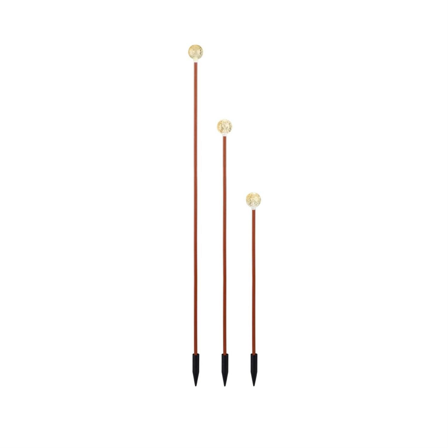 Die LED Gartenstecker mit den 3 Kügelchen in unterschiedlichen Höhen sind in Deinem Blumenbeet oder in Topfpflanzen eine gemütliche Dekoration für Deinen Garten, Deinen Balkon oder für Deine Terrasse. Die Kugeln mit den Blässchen verbreiten eine tolles warmweißes Licht.