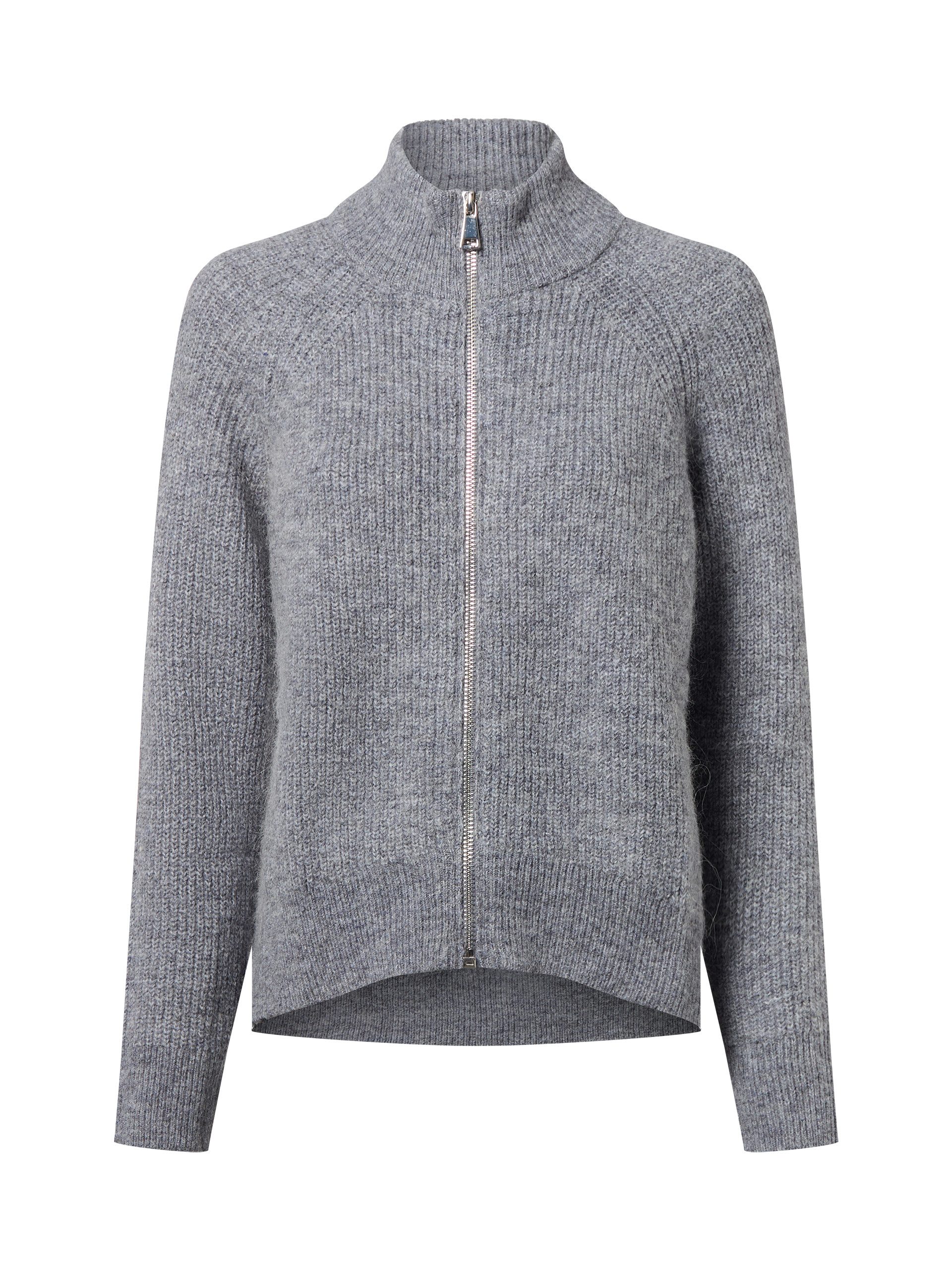 Die Marie Lund Strickjacke Woll- und Alpaka-Anteil erweist sich als cozy Layering-Style mit Rippbündchen und stilvollen Ziernähten.