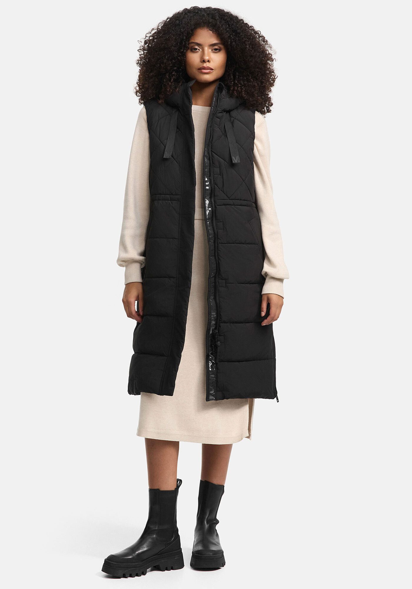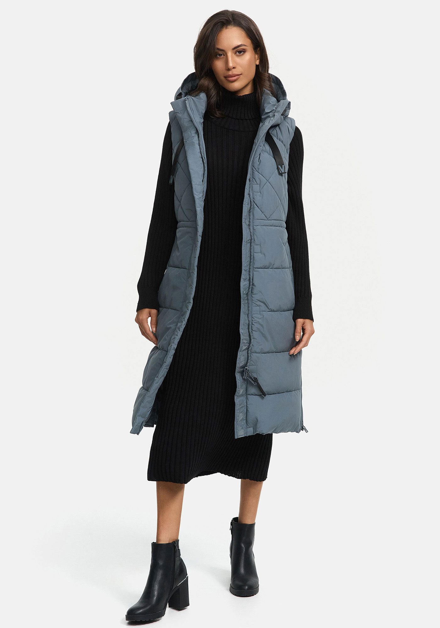 Angeboten wird eine lang geschnittene Damen Steppweste der Trendmarke "Marikoo". Zur Auswahl stehen Ihnen viele sehr schöne Farben, welche den aktuellen Modetrand wiederspiegeln. Ein sehr weiches aber dennoch robustes Obermaterial und eine gute Fütterung machen diese Weste zu Ihrem ständigen Begleiter in Herbst & Winter. Die Besonderheit dieser Weste liegt in der Довжина. Denn die Довжина reicht bis zu den Knien (je nach Körpergröße) und der gerade Schnitt erlaubt Ihnen auch problemlos einen etwas dickeren Pullover drunter anzuziehen. Die große und in der Weite verstellbare Kapuze, rundet in Verbindung mit dem stylischen breiten Kordelzug das schöne Design ab. Zur Auswahl haben Sie sieben sehr schöne Farben, in den Größen XS bis 3XL.