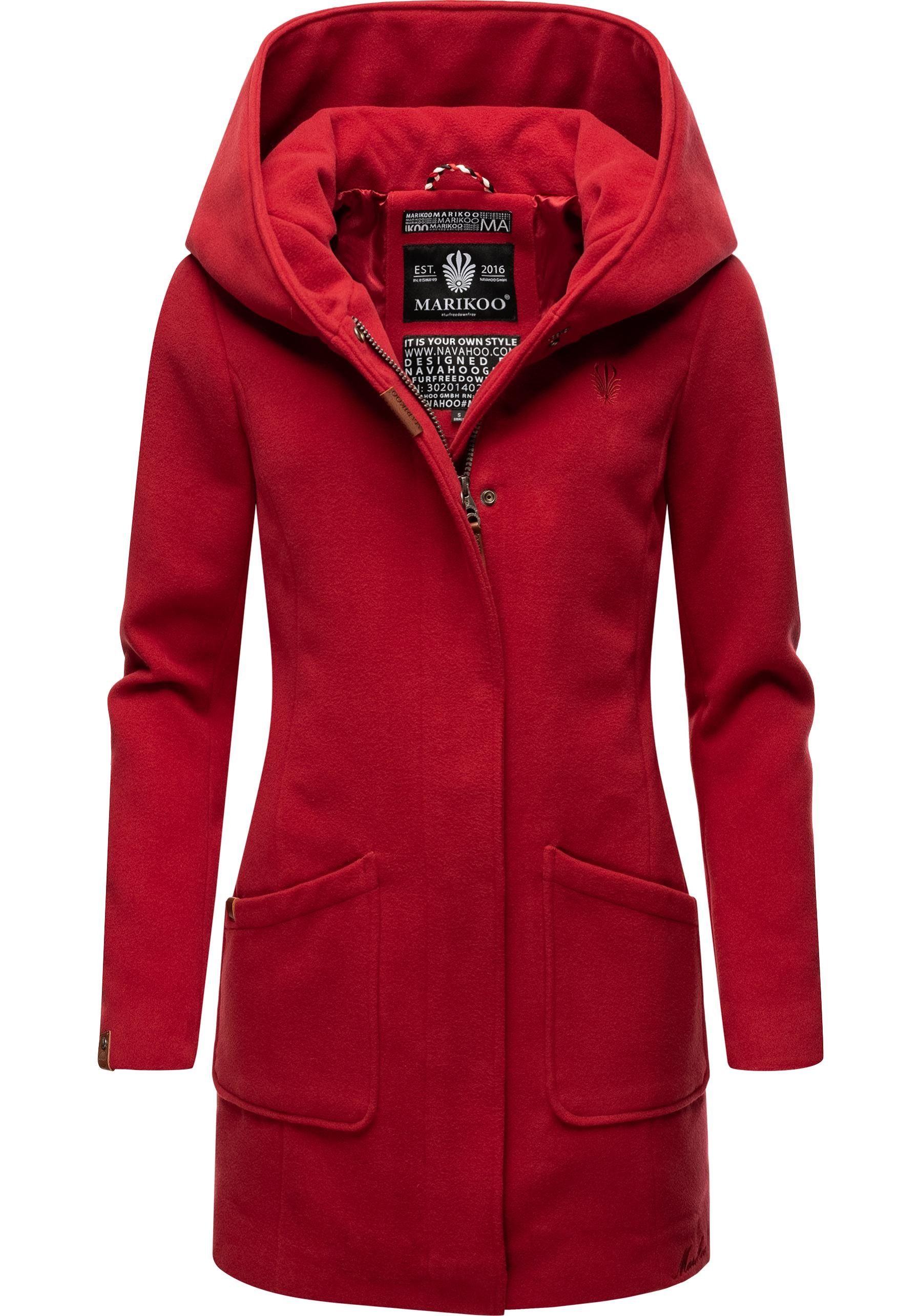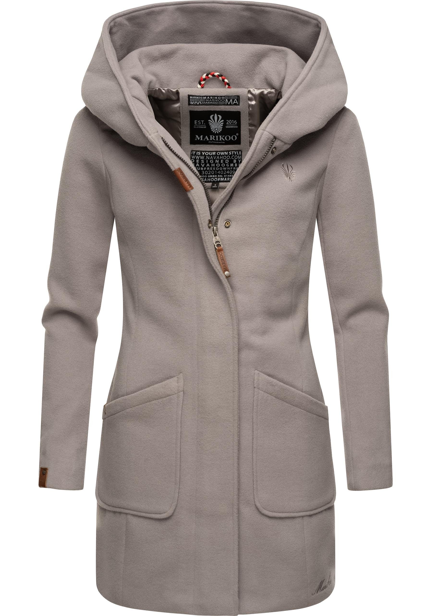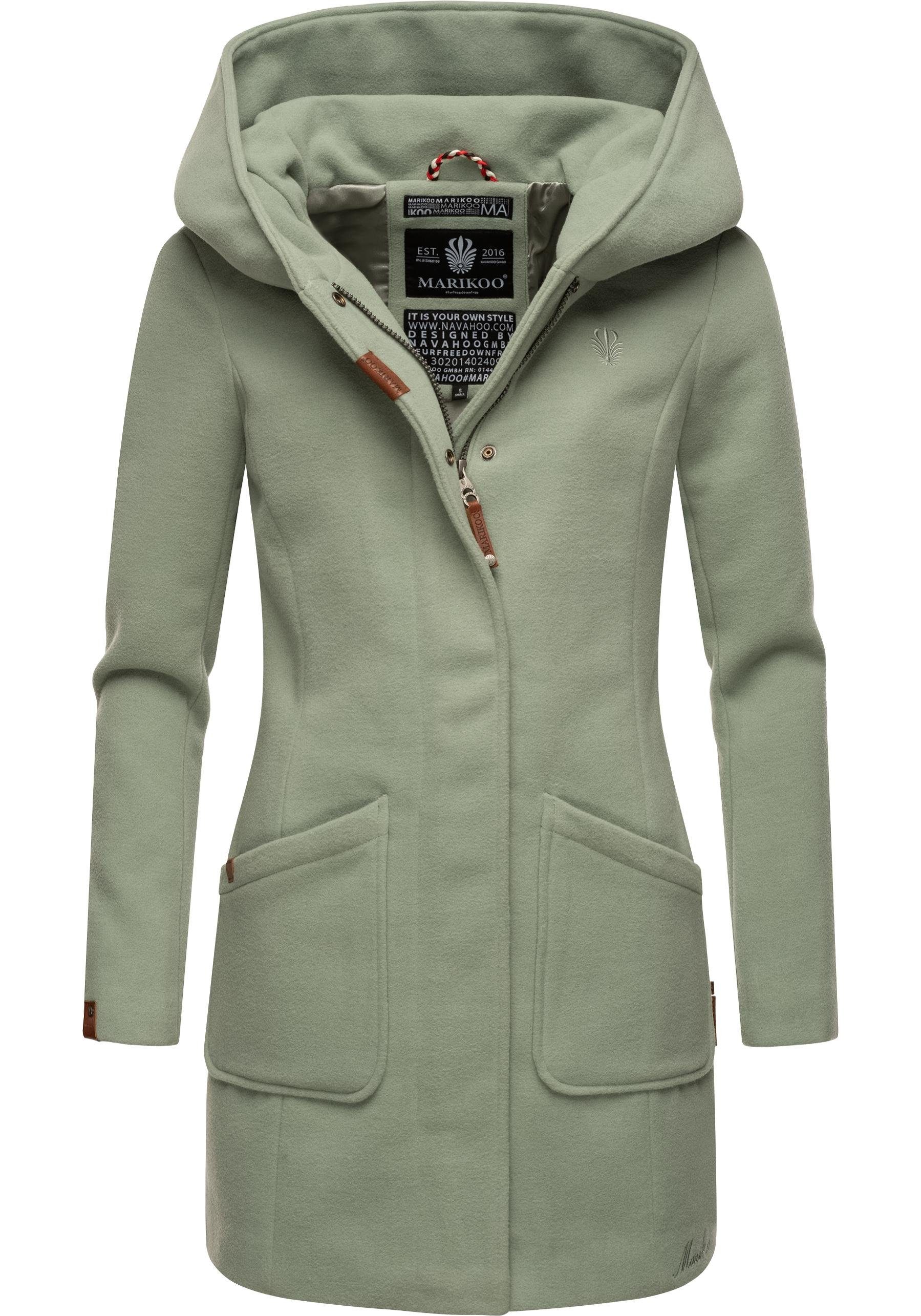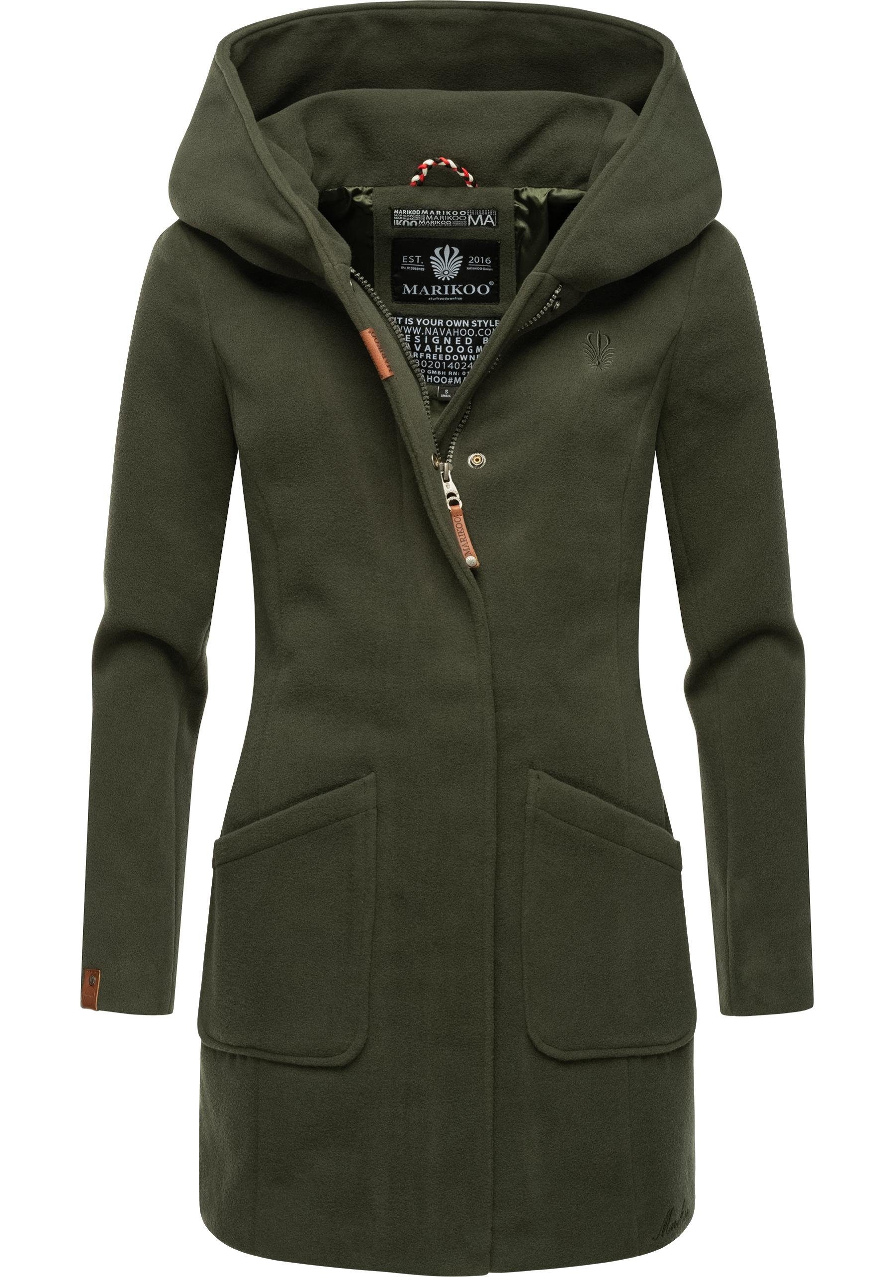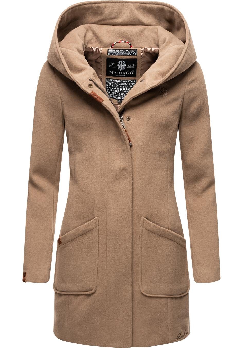 Besondere Merkmale | hochwertiger Mantel in Wollmantel-Optik mit großer Kapuze |