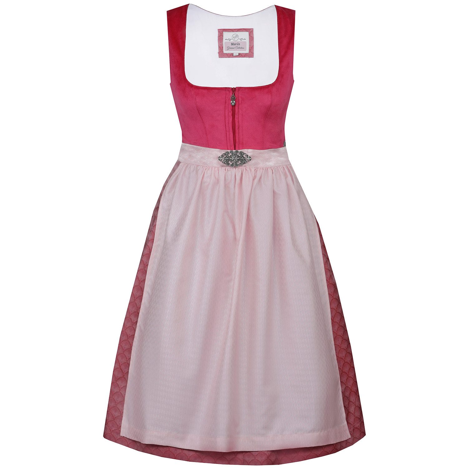 Lieferumfang: Dirndlkleid und Schürze - Farbe: Fuchsia - Rocklänge: ca. 65 cm - Mit Reißverschluss vorn - Rock mit Eingriffstasche