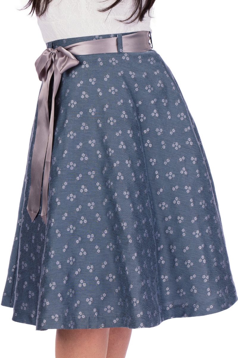 Dieser traumschöne, knapp wadenlange Trachten Tellerrock namens "Jette" in Vintage Bleu wird mit feiner Baumwolle in schöner, angenehmer Stoffqualität gefertigt, ist in femininer, ausgestellter A-Linie geschnitten und hat ein dezentes Webmuster aus klitzekleinen, schmalen Rauten sowie liebliche, eingewebte Blümchen in Silber mit Blättern in Helltaupe. Der Bund ist mit Gürtelschlaufen ausgestattet, durch die der edel schimmernde Bindegürtel aus silbergrauem Satin gefädelt wird. Rückseitig gibt es zudem einen verdeckten Reißverschluss und der eingearbeitete Unterrock in Taft-Art sorgt für einen tollen Tragekomfort. Der herrliche Trachtenrock lässt sich wundervoll zu Trachtenbluse und Blusenbody kombinieren. Bitte beachten Sie den Größenzuschlag bei Розмір 48.