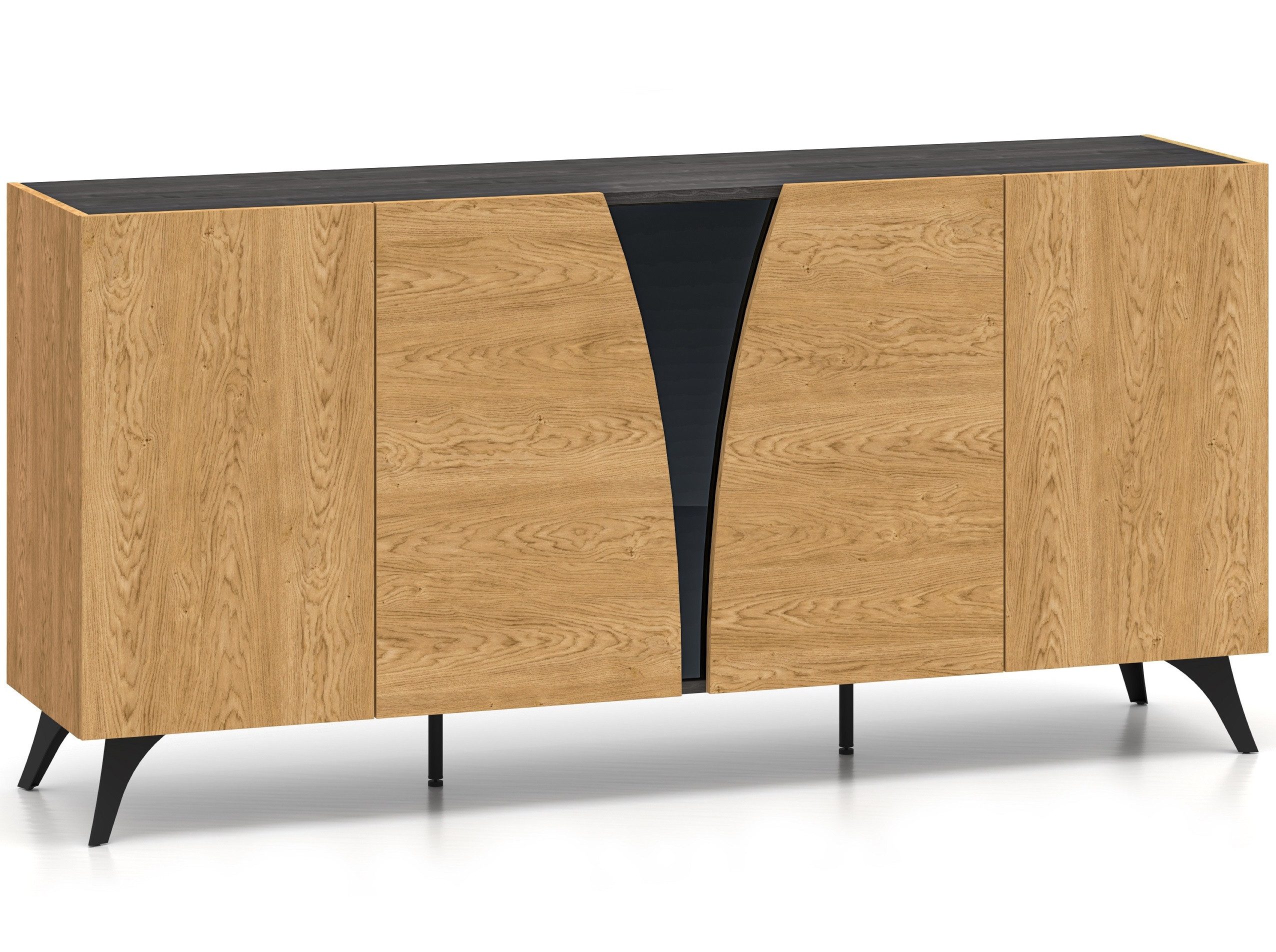 Farbe | Eiche Baltic Dune + Esche Portland Schwarz + Schwarzes Glas |