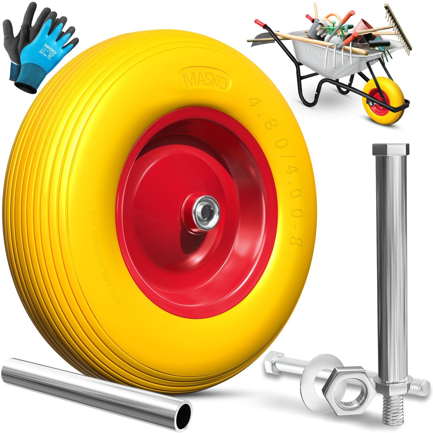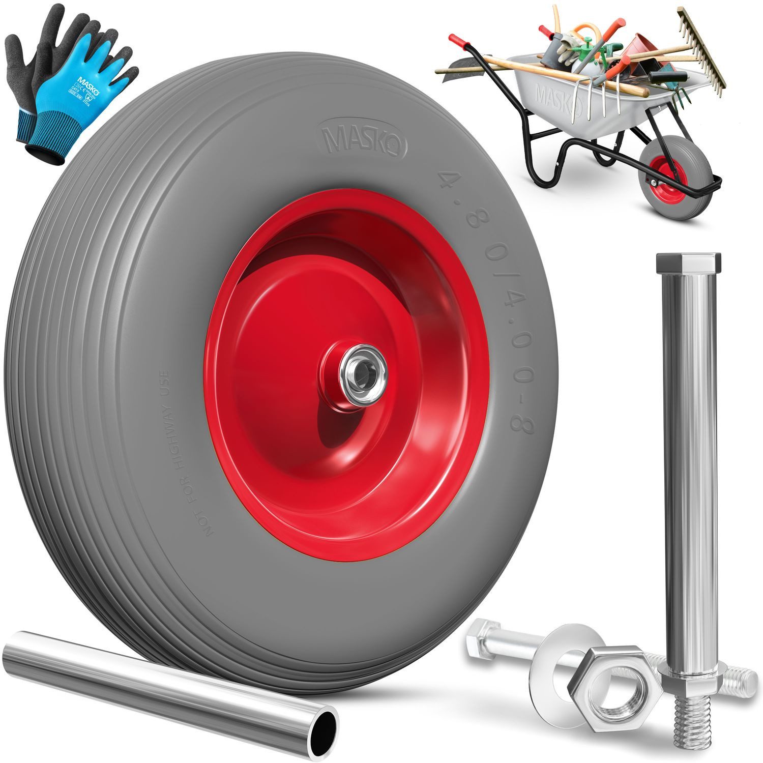 MASKO Schubkarrenrad, Vollgummirad für mehr Sicherheit, extra breit für besseren Fahrkomfort, hochwertige Stahlfelge für eine hohe Tragkraft, inkl. Montagezubehör