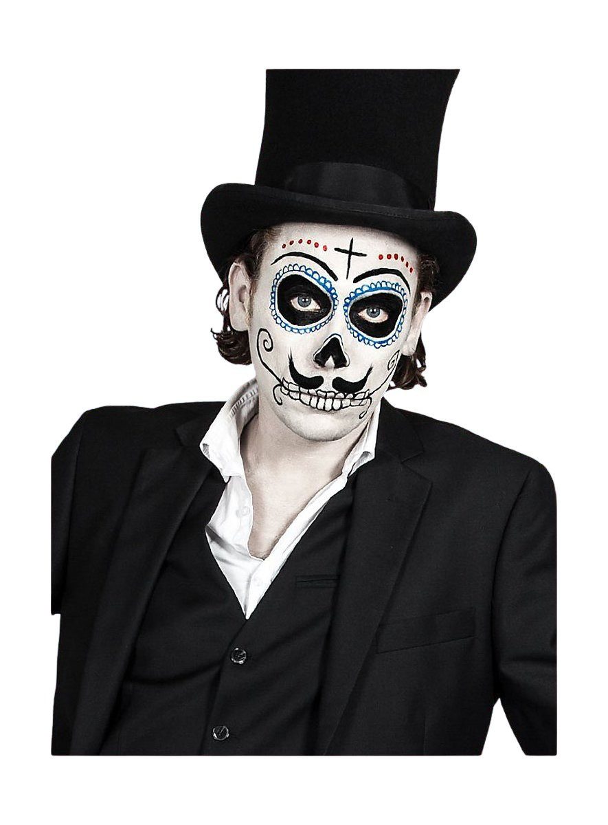 Das Make-up Set Dia de los Muertos Kavalier ist ein praktisches Halloween-Schminkset und bringt alles mit, was Du für die gelungene Verwandlung in eine elegante Tag der Toten-Figur brauchst!