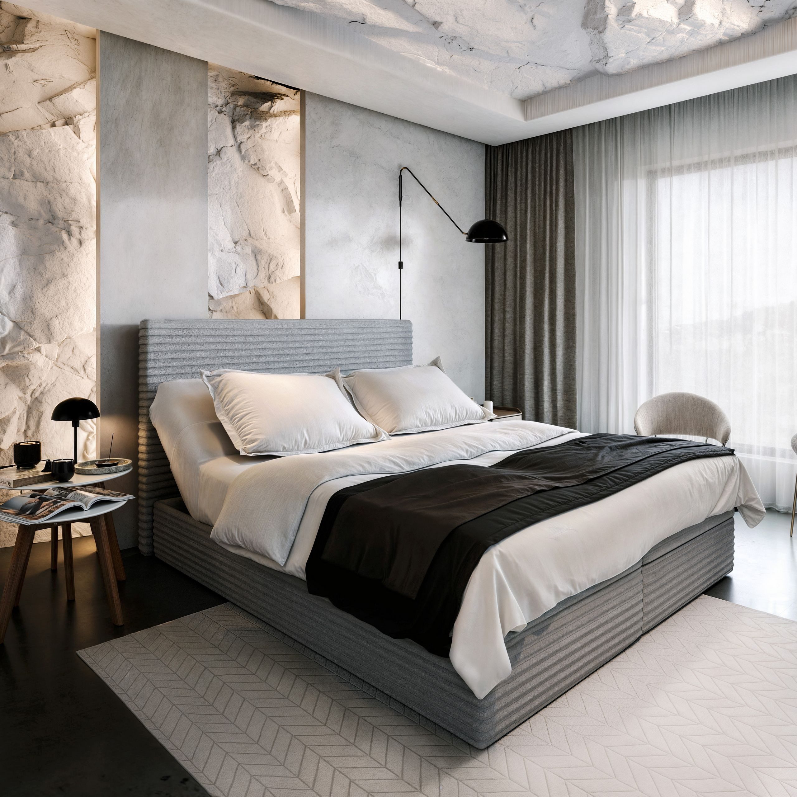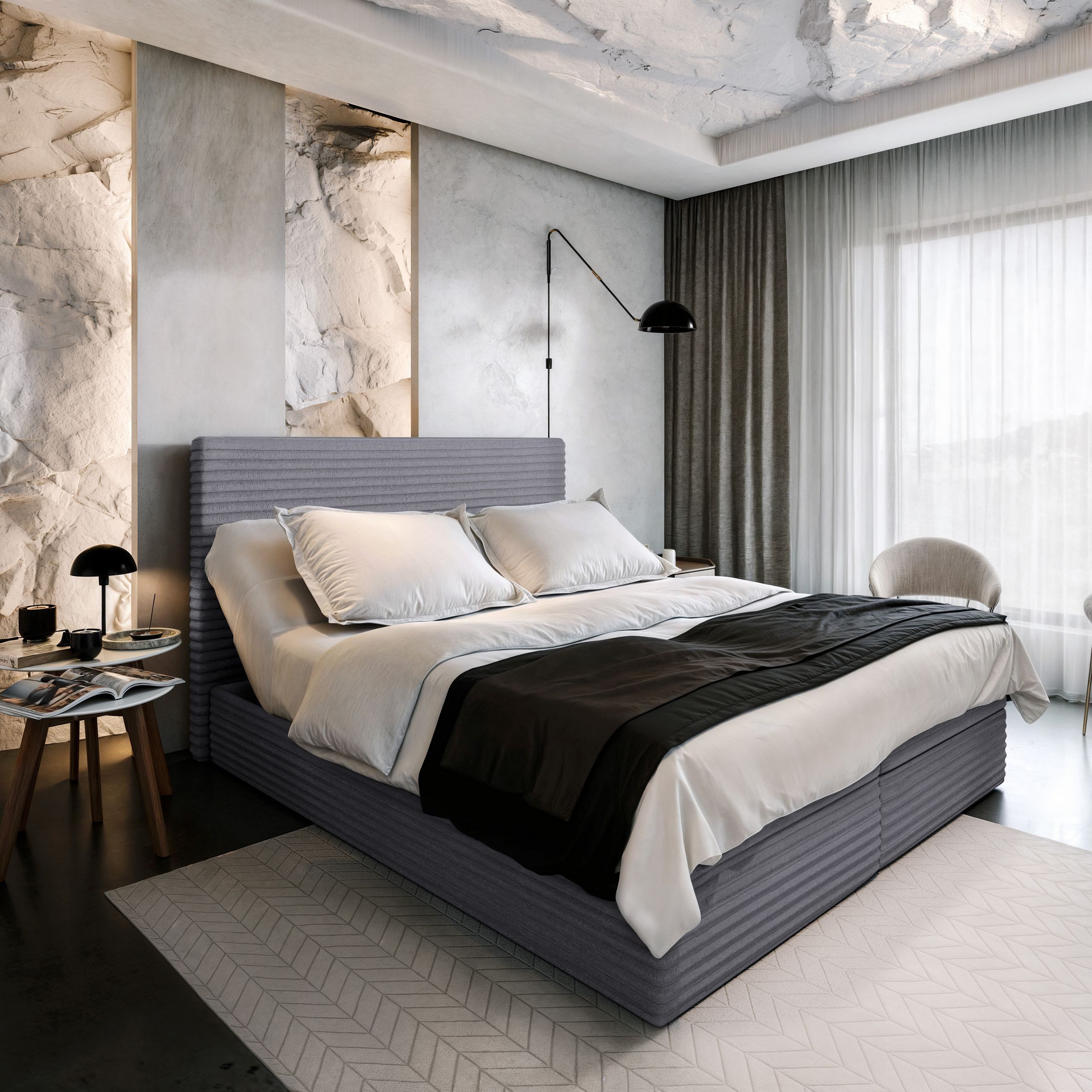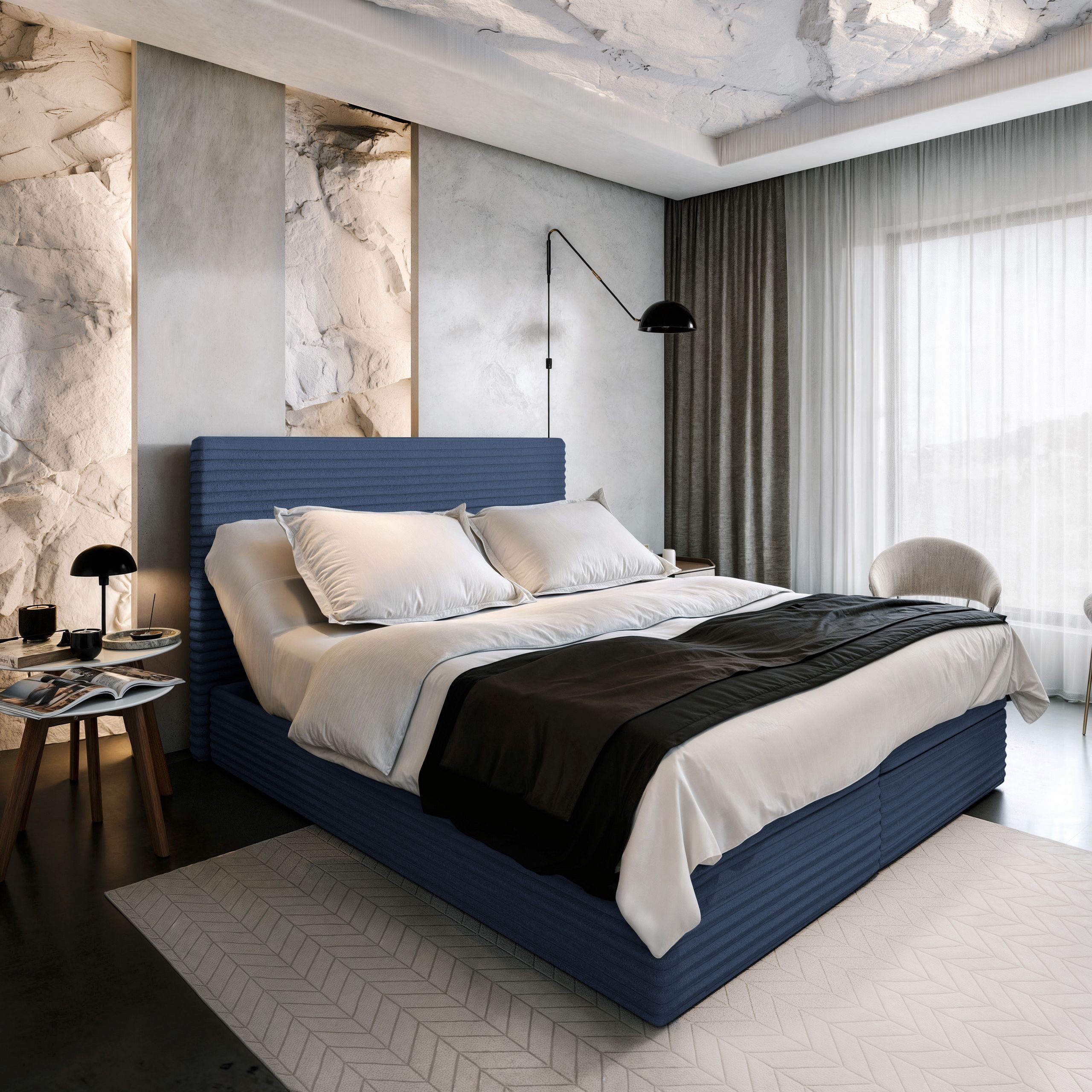 Das weiche, gepolsterte Kopfteil ermöglicht eine bequeme Sitzposition, perfekt für entspannte Abende mit Ihrer Lieblingslektüre oder Serie. Es ist nicht nur funktional, sondern verleiht dem Bett eine luxuriöse Note.