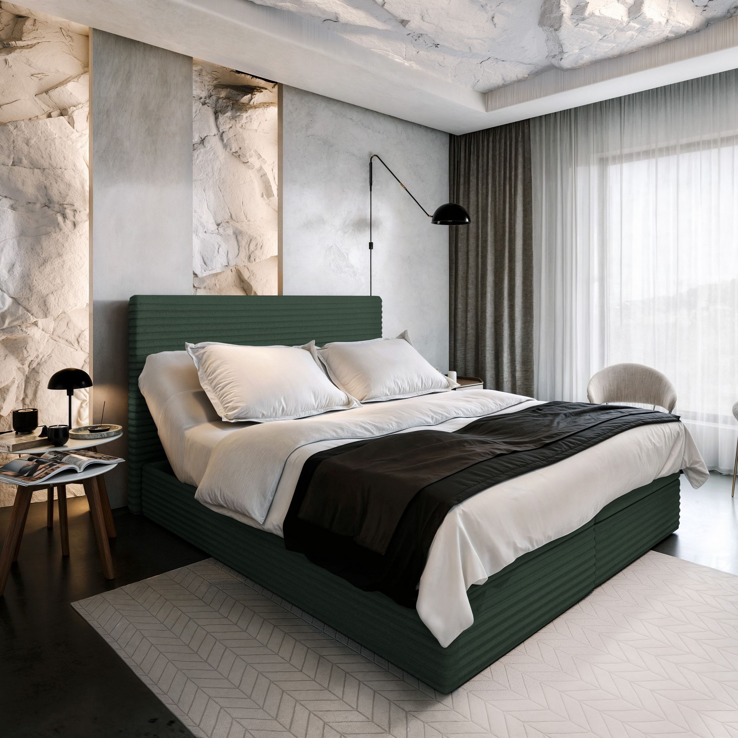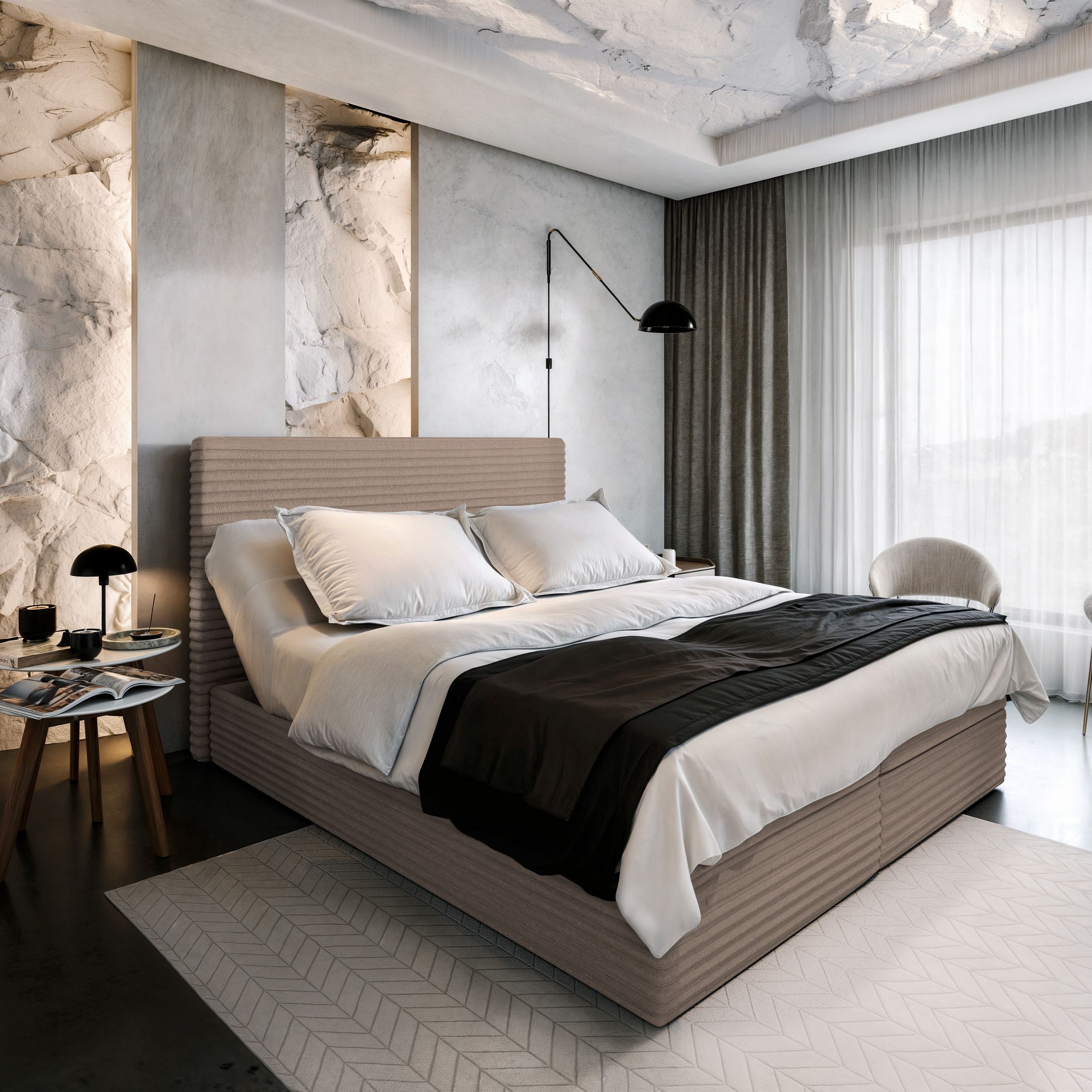 Das Kontinentalbett MILARA vereint Stil, Funktionalität und ergonomischen Komfort in einem einzigartigen Design. Durch die harmonische Verbindung von Ästhetik und praktischen Eigenschaften wird dieses Bett zum Blickfang in jedem Schlafzimmer und sorgt für eine einladende Atmosphäre voller Eleganz.
