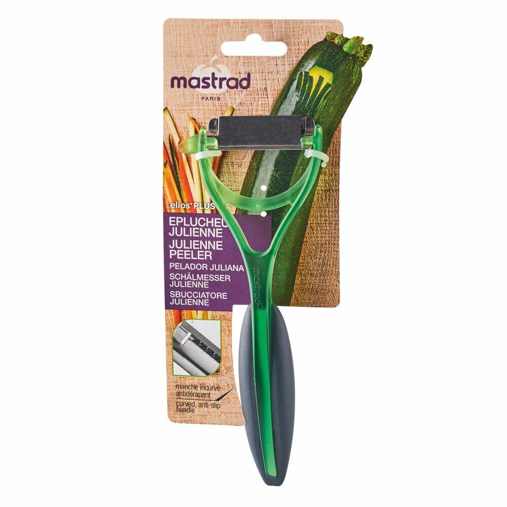 Zaubern Sie feine Streifen aus Gemüse und dekorieren Sie Ihre Speisen. Mit Spitze, um Kartoffelaugen zu entfernen. Gekrümmter und rutschfester Griff für einen Schnitt nahe am Gemüse. Reinigung mit einem feuchten Tuch oder in der Spülmaschine. Für Links- und Rechtshänder.