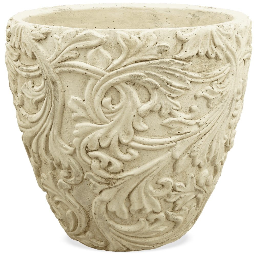 matches21 Töpfe Pflanztöpfe aus Zement Ornamente Deko Gartendeko Relief antik Garten Frühling creme 1 Stk 3 Größen