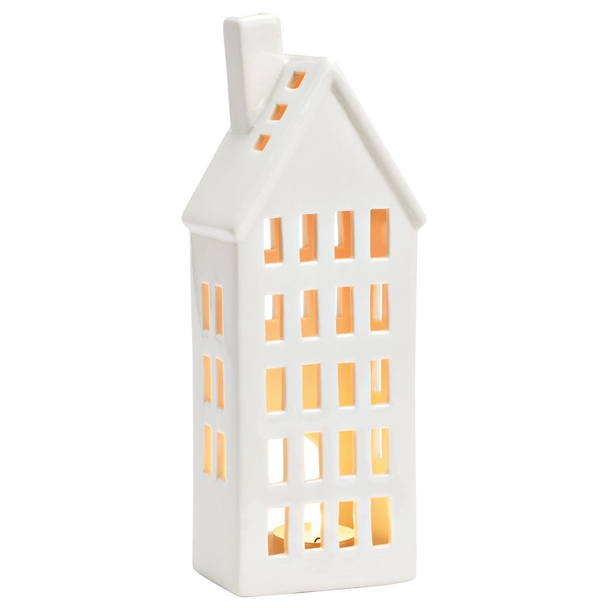 matches21 Skandinavische Lichthäuser für Teelichter - Weiße Teelichthalter Leuchthäuser aus Porzellan - Hygge Windlichter als Weihnachtsdeko für Wohnzimmer, Schlafzimmer, Flur in 2 Größen