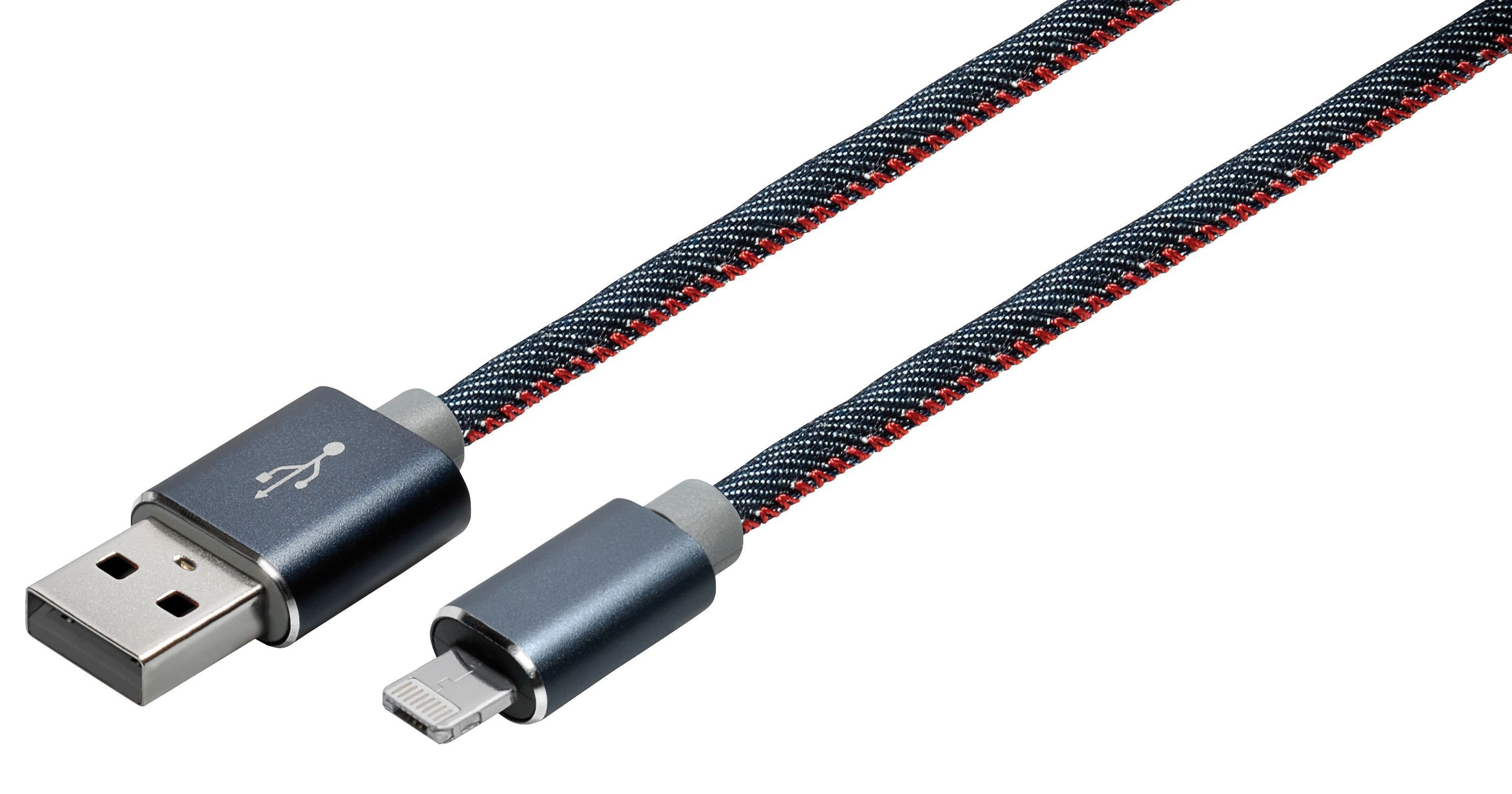 Eigenschaften | reversible USB plug, Denim-Stoffbezug, hochflexibel |