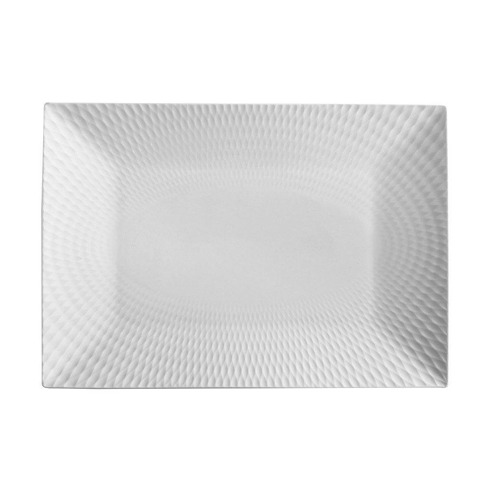 Die Maxwell & Williams Diamonds Round Servierplatte eckig 25x18 cm vereint klassisches Design mit einer einzigartigen Oberflächengestaltung, die durch ein erhabenes Reliefdekor aus kleinen Sechsecken und metallischem Glanz besticht.