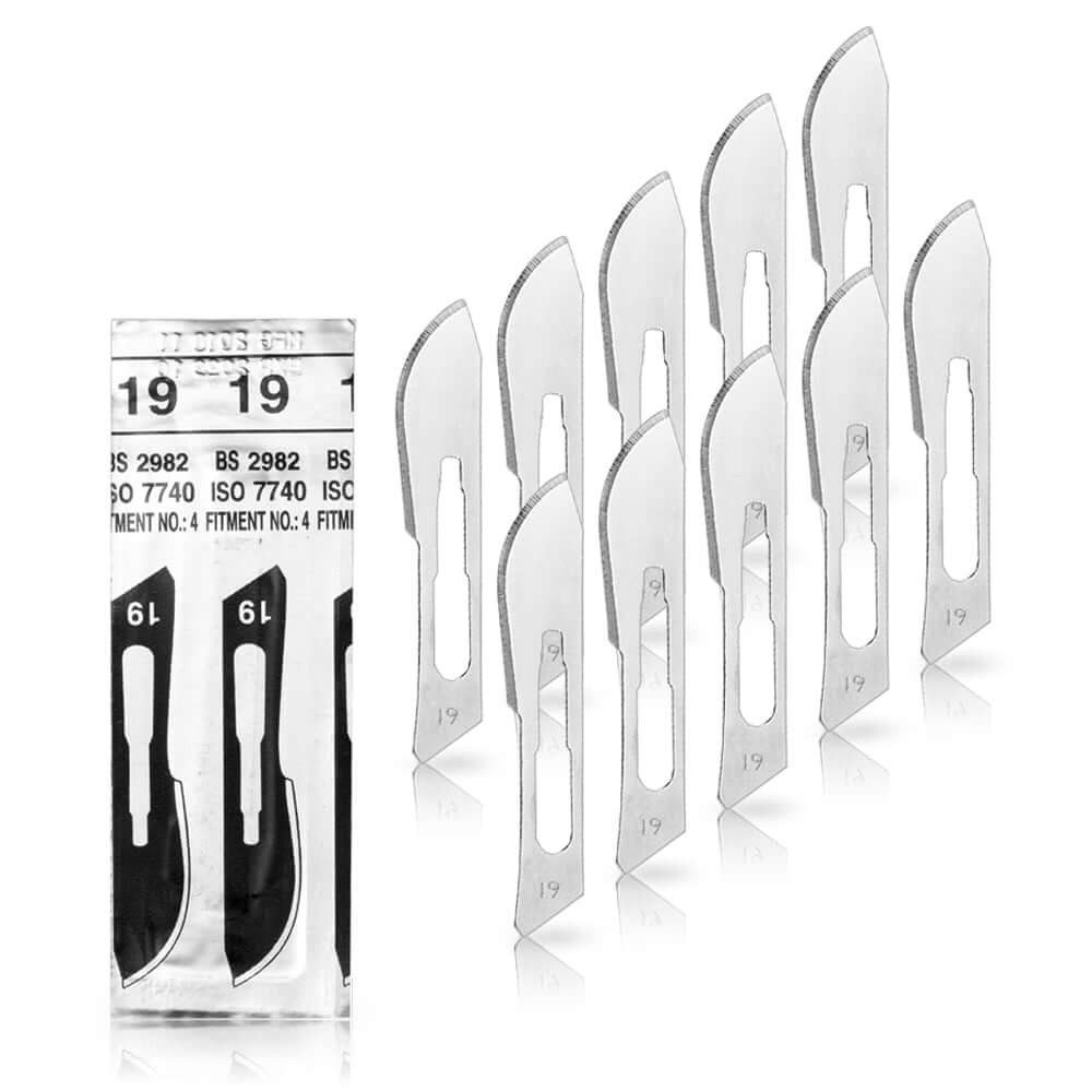 Bastelmesserklinge 10 Stück Skalpellklingen Figur 19 aus Karbonstahl für Skalpell-Halter