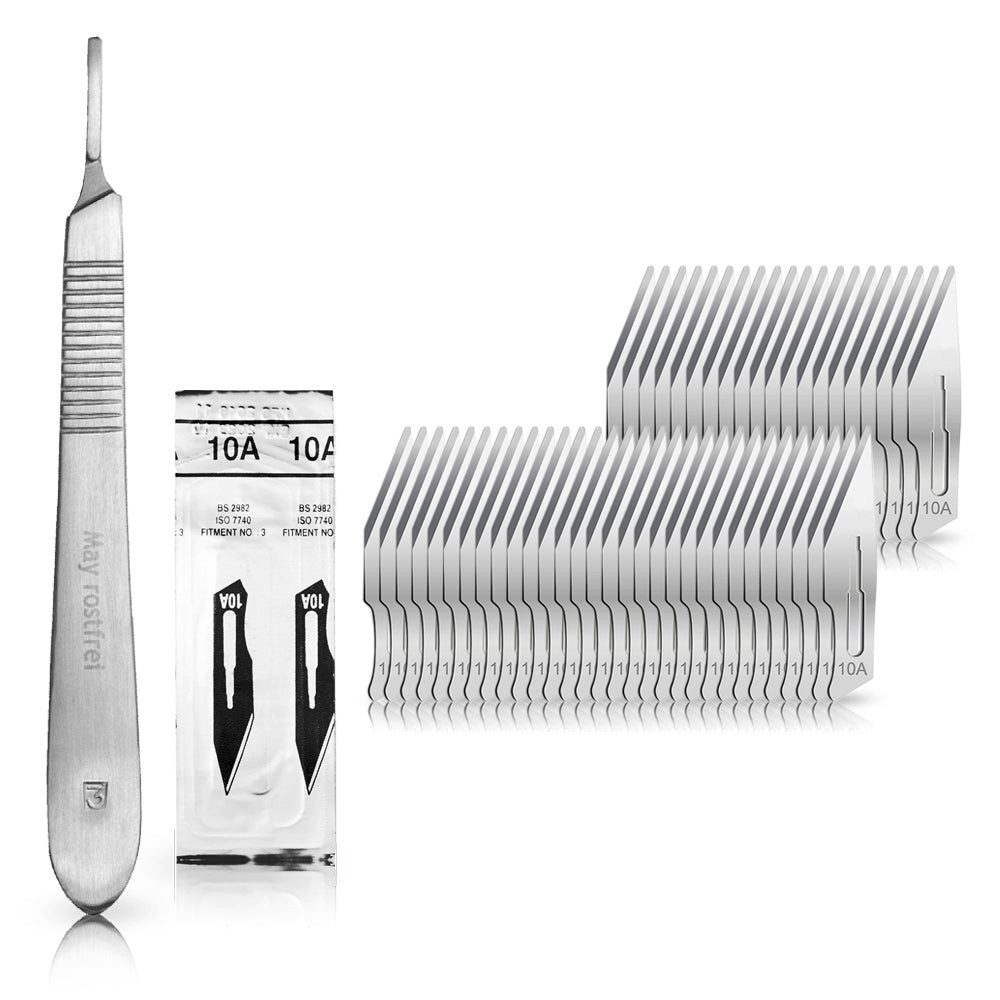 May Bastelmesserklinge Set Bastelmesser mit Hobby-Skalpellgriff aus Edelstahl und 50 Stück