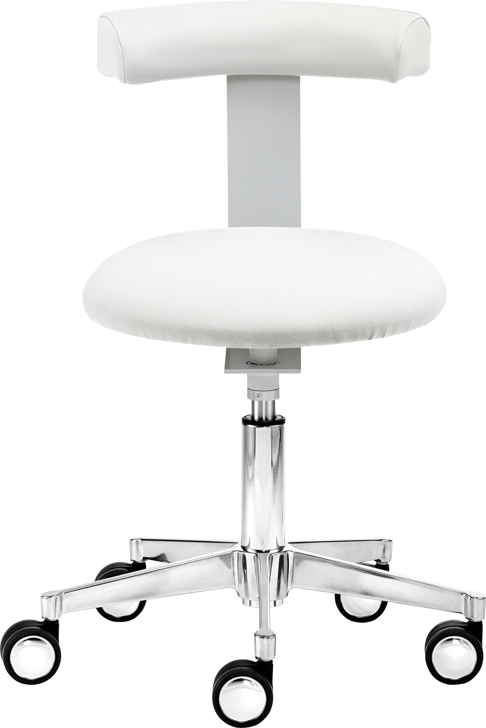 Wissenswertes | Gasfeder TÜV geprüft Kunstleder äußerst strapazierfähig - schmutzabweisend, ohne Phtalate, leicht zu reinigen, widerstandsfähig gegen UV-Licht, schweiß-, urin-, blutbeständig, ausgerüstet gegen Mikroben und Bakterien, Flammschutzausrüstung, auf Verträglichkeit von von mehreren Desinfektionsmitteln getestet Sattelsitz für gesunde Körperhaltung und rückenentlastendes Arbeiten Sitz- und Rückenpolster mit hochwertigem Sitzhöhenverstellung durch Sicherheitsgasfeder Verschmutzungen können sich nicht festsetzen desinfektionsmittelbeständig immer auf der richtigen Arbeitshöhe dank stufenloser modernes, poliertes Aluminium-Fußkreuz – mit geschlossener Unterseite, stufenlose Sitzneigungsverstellung und strapazierfähigem skai® Kunstlederbezug |