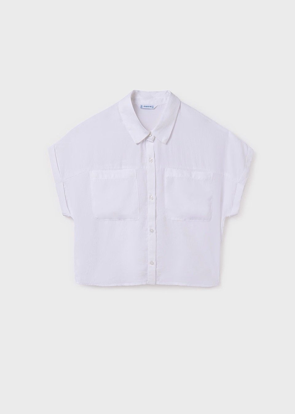 Diese fließende Kurzarm-Tunika-Bluse für Teenager-Mädchen ist perfekt für warme Tage. Mit einem klassischen Hemdkragen und einem praktischen Knopfverschluss auf der Vorderseite lässt sich die Bluse mühelos an- und ausziehen. Die funktionellen Taschen auf der Vorderseite bieten zusätzlichen Komfort und Stil. Hergestellt aus 100 % Polyester, ist die Bluse leicht, weich und angenehm zu tragen – ideal für den Alltag oder ein schickes Freizeitoutfit.