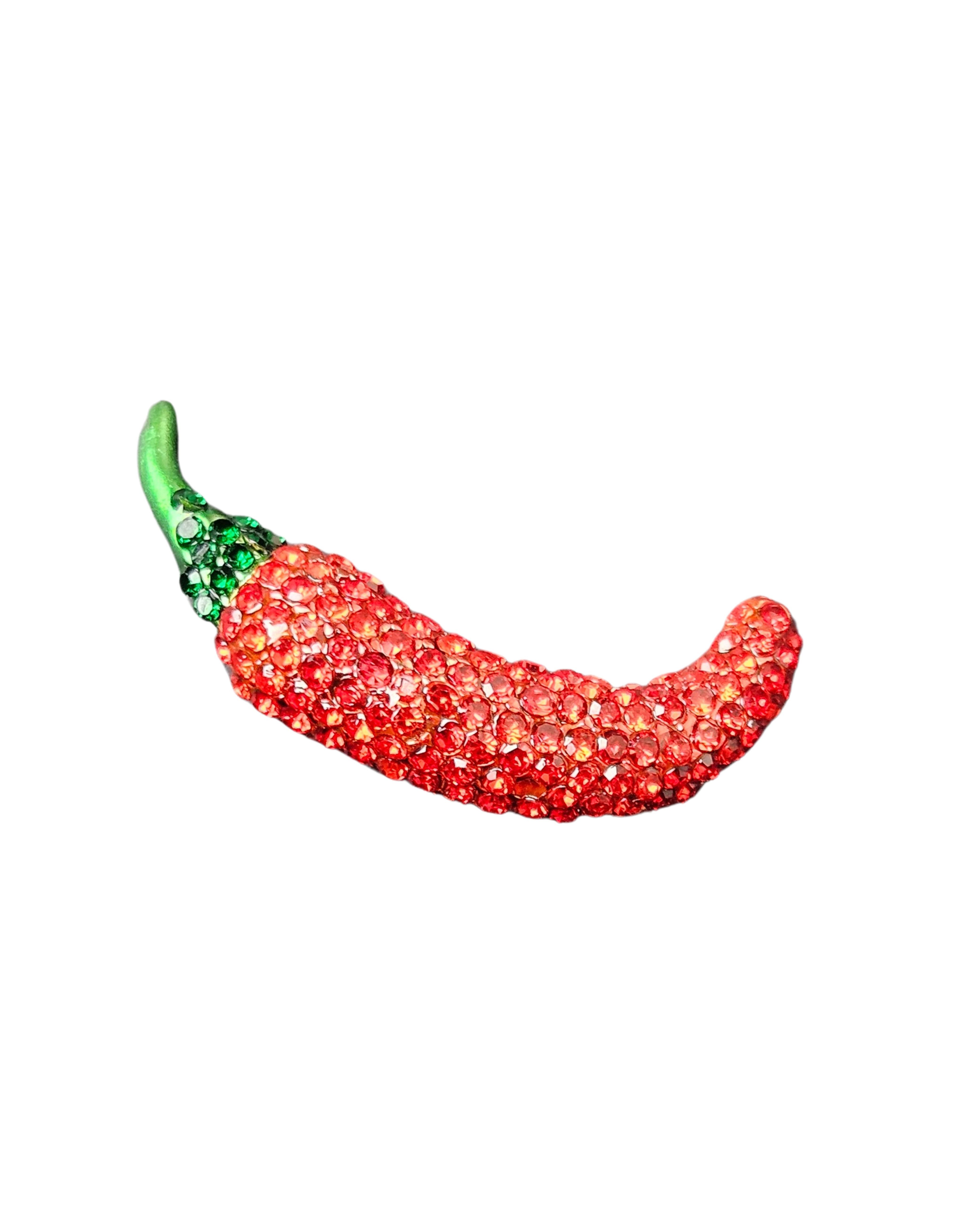 Besondere Merkmale | Metallbrosche mit rotem und grünem Strass |
