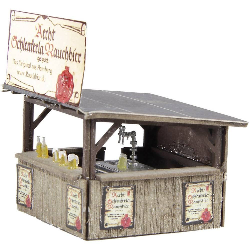 Ausstattung | Altersklasse: ab 15 Jahre · Ausführung (allgemein): Bierbude mit Ausstattung · Baugröße: H0 · Modellausführung (Modellbahn): Lasercutbausatz, Unbemalt · Produktabmessung, Breite: 32 mm · Produktabmessung, Höhe: 27 mm · Produktabmessung, Довжина: 34 mm |