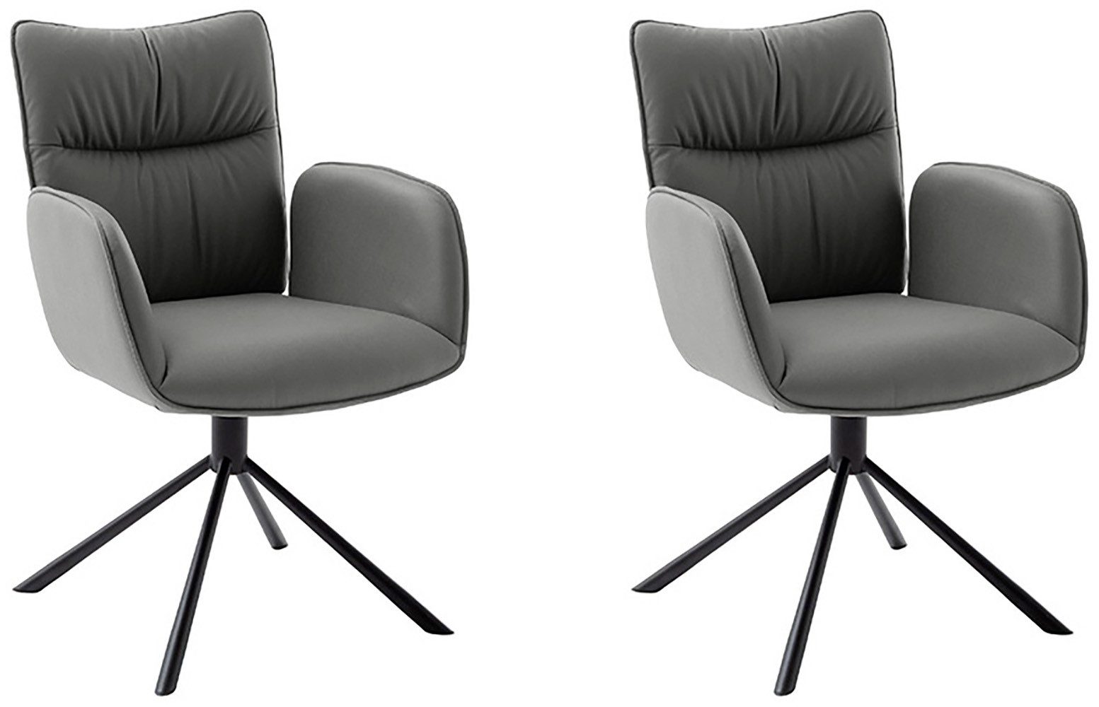 Diese 4-Fußstühle »MARIN Esszimmerstuhl (2er Set) - Stuhl« von MCA furniture sind nicht nur Sitzgelegenheiten, sondern auch Orte, an denen du dir eine kleine Auszeit vom Alltag nehmen kannst. Die Drehfunktion ermöglicht ein einfaches Hinsetzen und Aufstehen, ohne den Stuhl verrücken zu müssen. Das ist vor allem dann vorteilhaft, wenn um den Stuhl herum wenig Platz ist. Auch wenn du länger sitzen bleibst, ist er komfortabel, denn sowohl die Arm- und Rückenlehne als auch die Sitzfläche sind angenehm gepolstert. Die maximale Belastbarkeit liegt bei einem Gewicht von 120 Kilogramm.