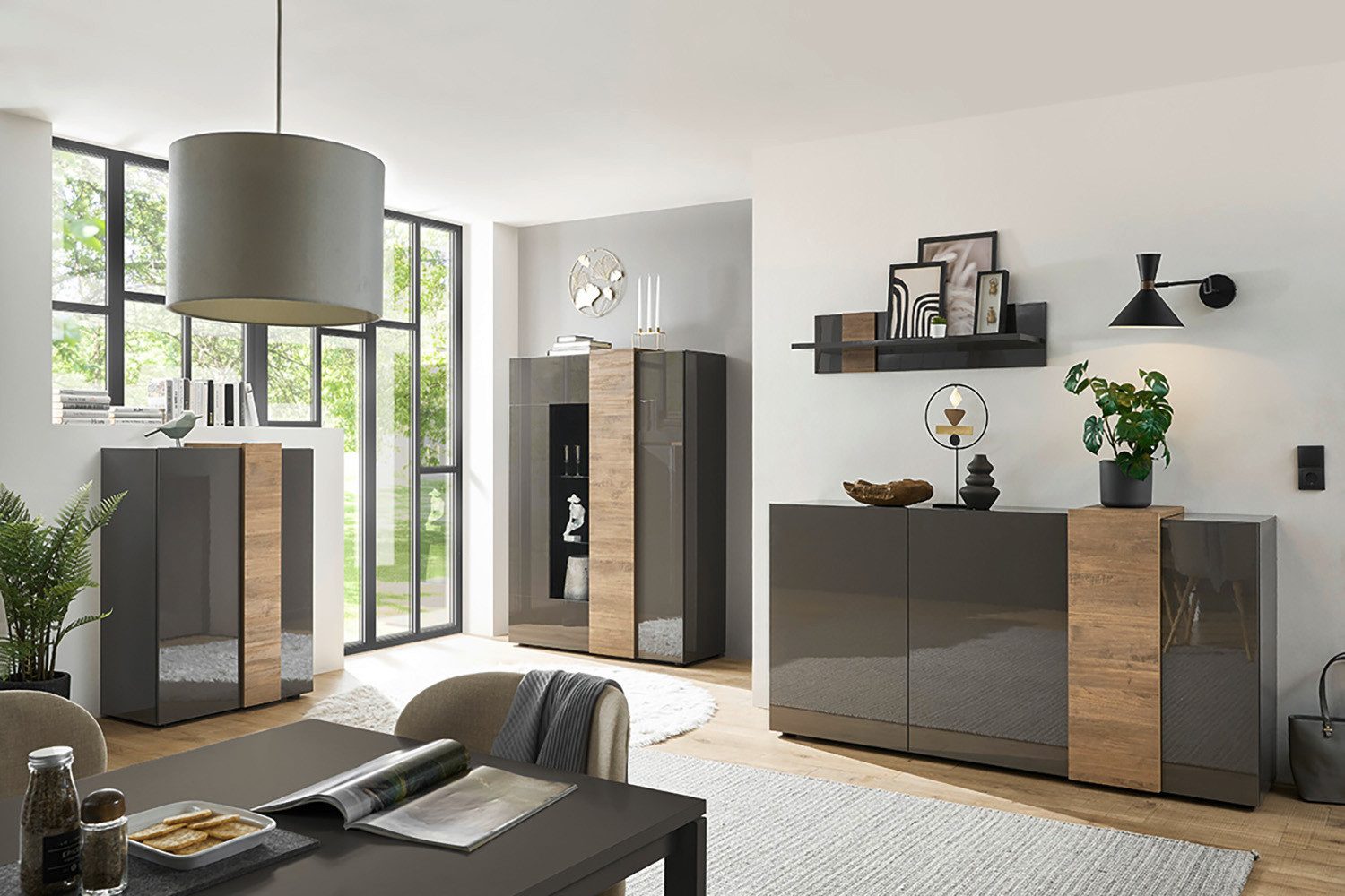 Modern designt, lässt sich das Sideboard mit vielen Einrichtungsstilen harmonisch kombinieren. Um Akzente zu setzen, eignen sich beispielsweise farbige Vasen gut, die entweder mit Blumen oder auch mit bunten Lichterketten dekoriert werden können. Es ist Bestandteil der Serie Positano. Von dieser kannst du dich beim Einrichten inspirieren lassen.