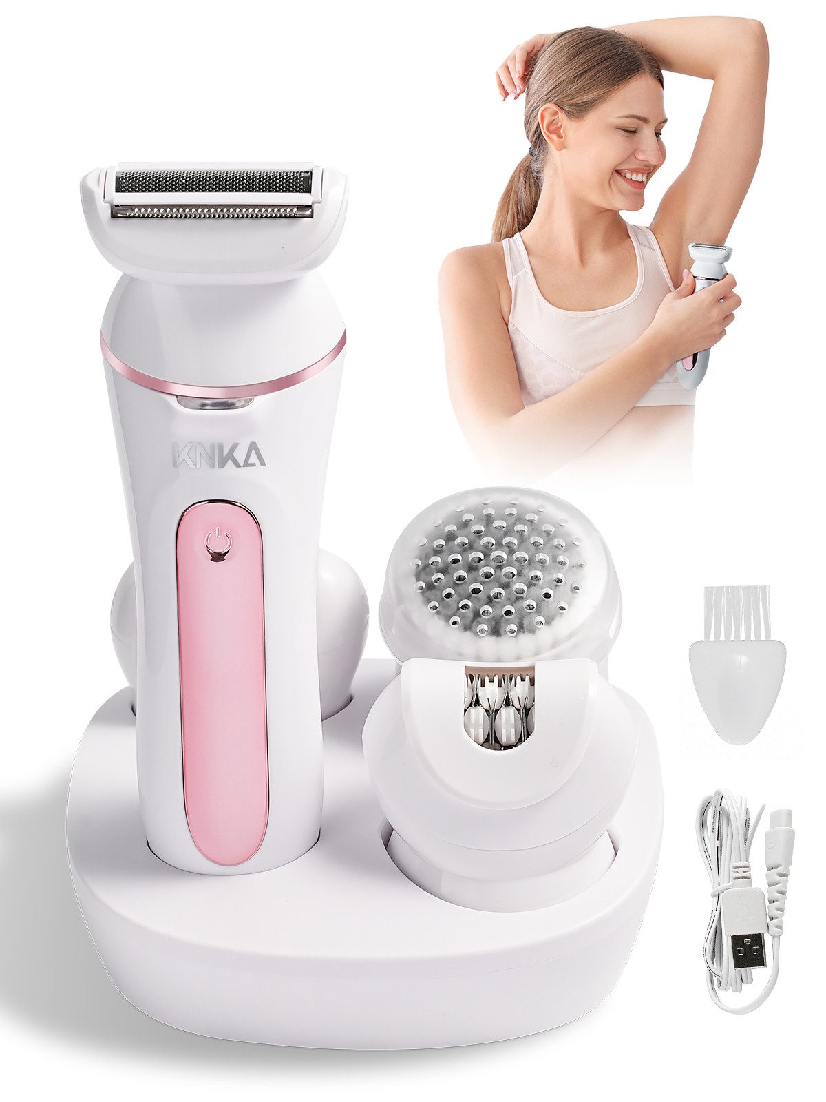 Ausstattung | Gesichtsbürste Gesichtsmassagepad Schleifkopf Rasierkopf Kleiner Bereich Kappe USB-Ladekabel Ladestation Reinigungsbürste |