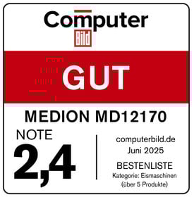 Testurteil von computerbild.de vom 27.06.2025, Ausgabe Juni 2025, Seite /bestenlisten/Eismaschinen-Test-39796315.html: "GUT - 2,4"