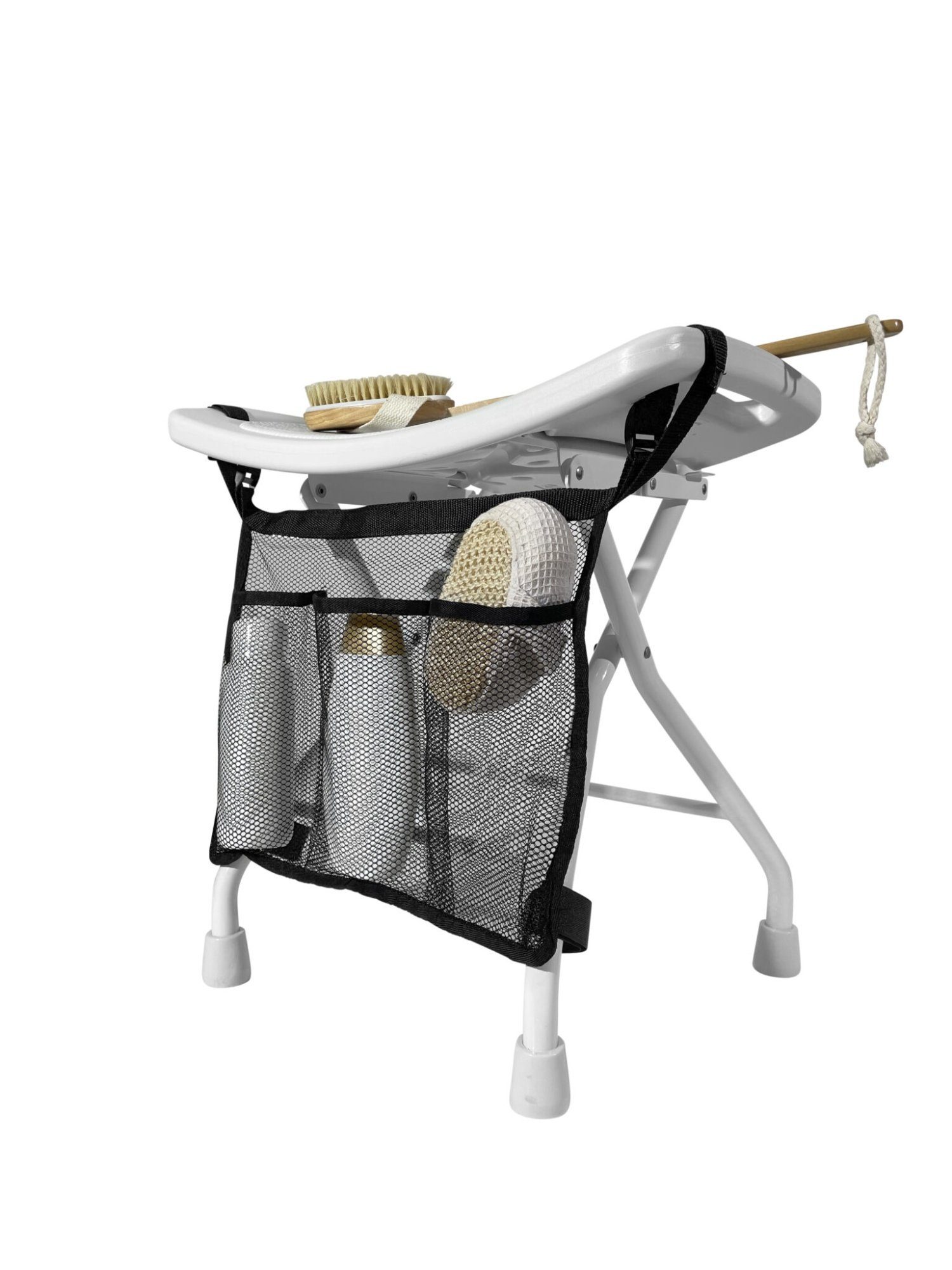Körperpflege kann bei zunehmendem Alter oder auch im Rahmen von Erkrankungen jeder Art zur Herausforderung werden. Das gilt nicht nur für die Betroffenen selbst, sondern auch für pflegende Angehörige bzw. Mitarbeiter von Pflegediensten. Mit dem Bad- und Duschhocker sorgen Sie hier für sichere und komfortable Unterstützung: Der Duschhocker ist mit rutschfesten Füßen ausgestattet und hat eine leicht gewölbte Sitzfläche mit Öffnungen für den Wasserabfluss – Sie sitzen also nicht "im Nassen" und selbst unter der laufenden Dusche ist jederzeit der Wasserabfluss gewährleistet. Das verhindert ein unnötiges Aufweichen der Haut und schont empfindliche Stellen. Mit dem Duschhocker klappt die Körperpflege auch in kleinen Bädern und Nasszellen! Der Dusch- und Badehocker verfügt über einen praktischen Klappmechanismus, der sich auch für kleine Bäder und Nasszellen eignet und somit im Rahmen der Körperpflege zum unverzichtbaren Accessoire wird. Die dazu passende Utensilientasche ermöglicht den effizienten Einsatz und sorgt dafür, dass Sie Shampoo, Seife oder auch andere Utensilien für die persönliche Körperpflege praktisch verstauen und transportieren können. Einfach am Badhocker zu befestigen und für den Einsatz im Nassbereich geeignet!
