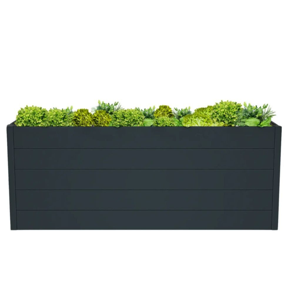 Das Premium Aluminium Hochbeet ist eine elegante und minimalistische Lösung für alle Gartenfreunde, die Wert auf hochwertige und wartungsfreie Materialien legen. Dieses innovative Hochbeet besticht durch die flexible Konstruktion mit Nut- und Feder-Hohlkammerprofilen aus beschichteten Aluminium. Die verdeckten Edelstahlschrauben auf der Innenseite perfektionieren die moderne Optik. Ein leicht abgerundetes Abschlussprofil macht einen Handlauf überflüssig und lässt das Beet zum optischen Highlight in jedem Garten werden. Die riesige Anbaufläche von 1,62 m² bieten genügend Raum für einen tollen Kräutergarten oder eigene Gemüse-Anzucht.