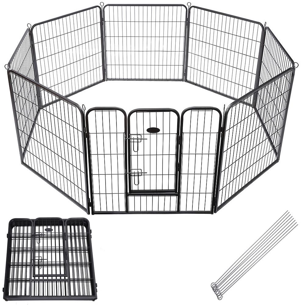Dieses hochwertige und stabile Welpenauslauf - Freigehege besteht aus acht untereinander eingehängten je 80 cm breiten und 100 cm hohen Seitenelementen. Aufgrund der durchdachten Konstruktion lassen sich verschiedene Modelle stellen, so daß das Freigehege sich den jeweiligen Gegebenheiten anpassen läßt. Der äußerst stabile Welpenauslauf ist mit einem dunklen silberfarbenen Hammerschlaglack versehen und dadurch extrem langlebig. Also - genau das Richtige, wenn Sie Ihre kleinen süßen Lieblinge mal rauslassen wollen...