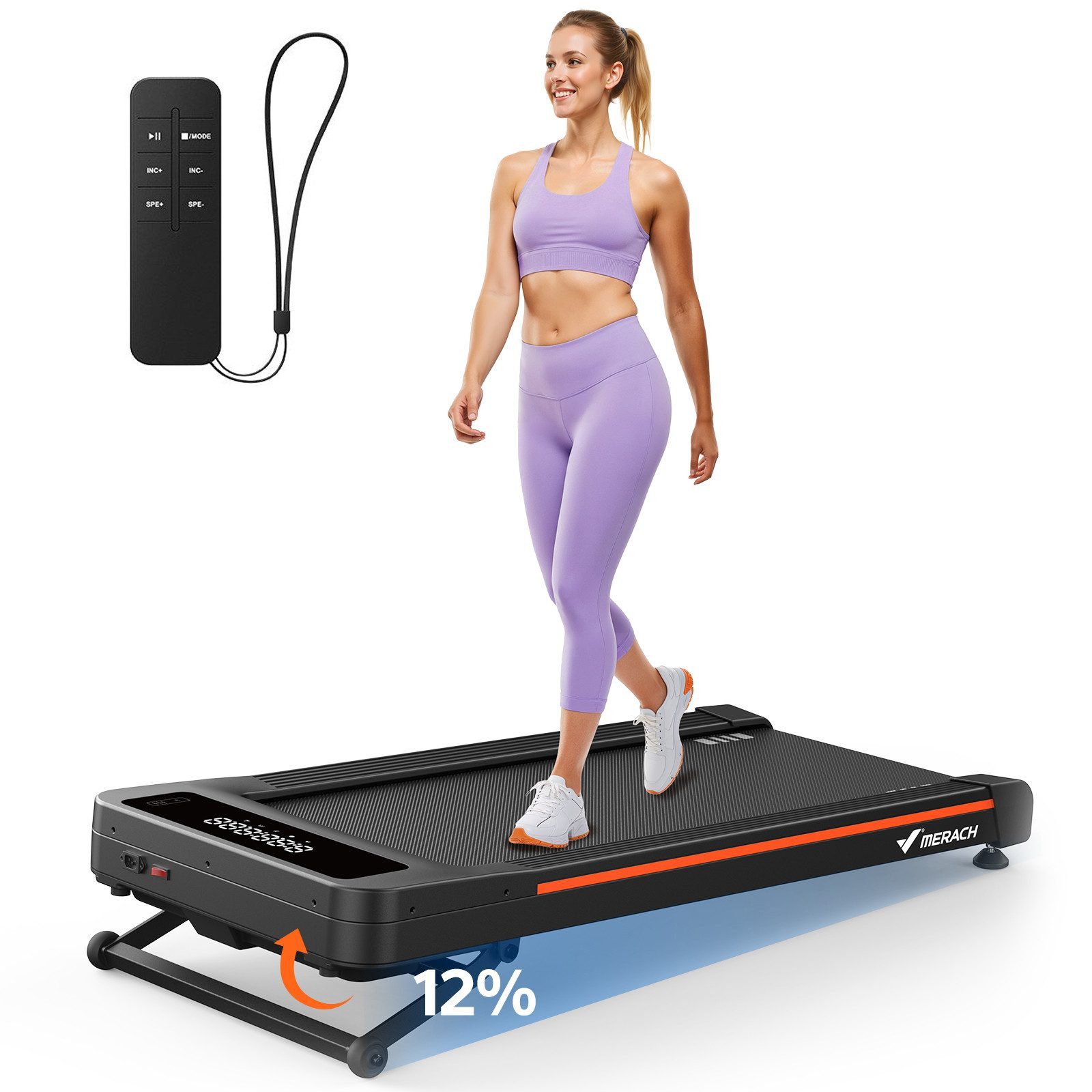 Steuern Sie Ihr Laufband ganz einfach über die mitgelieferte Fernbedienung oder unsere benutzerfreundliche App, die Ihnen ermöglicht, Ihre Fortschritte in Echtzeit zu verfolgen. Ob Zeit, Geschwindigkeit oder Kalorienverbrauch – alle wichtigen Daten sind stets im Blick.