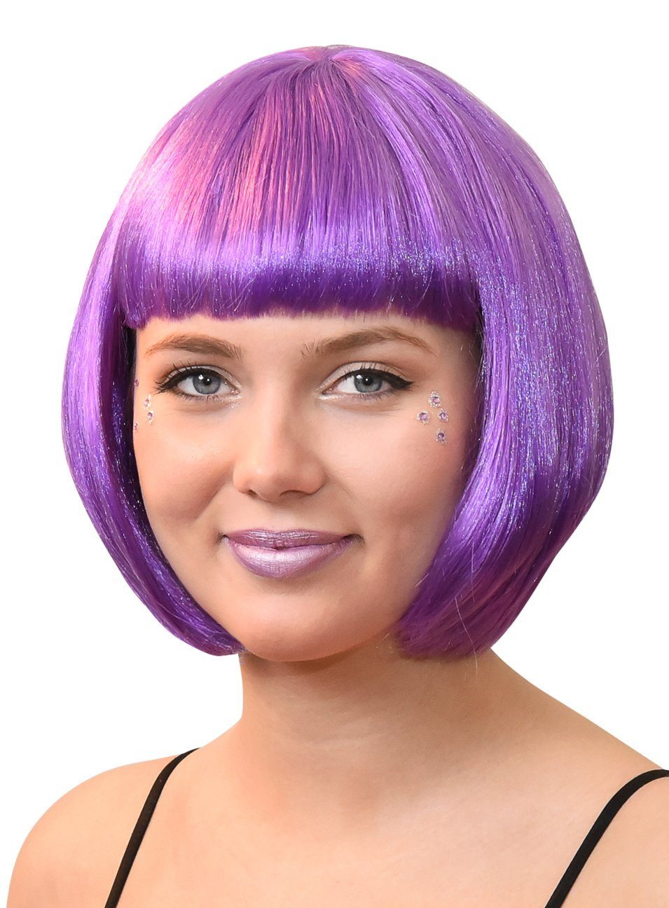 Lieferumfang | - Bobfrisur Perücke lila einteilig- mit Pony- Einheitsgröße für Erwachsene- ohne sonstige Accessoires |
