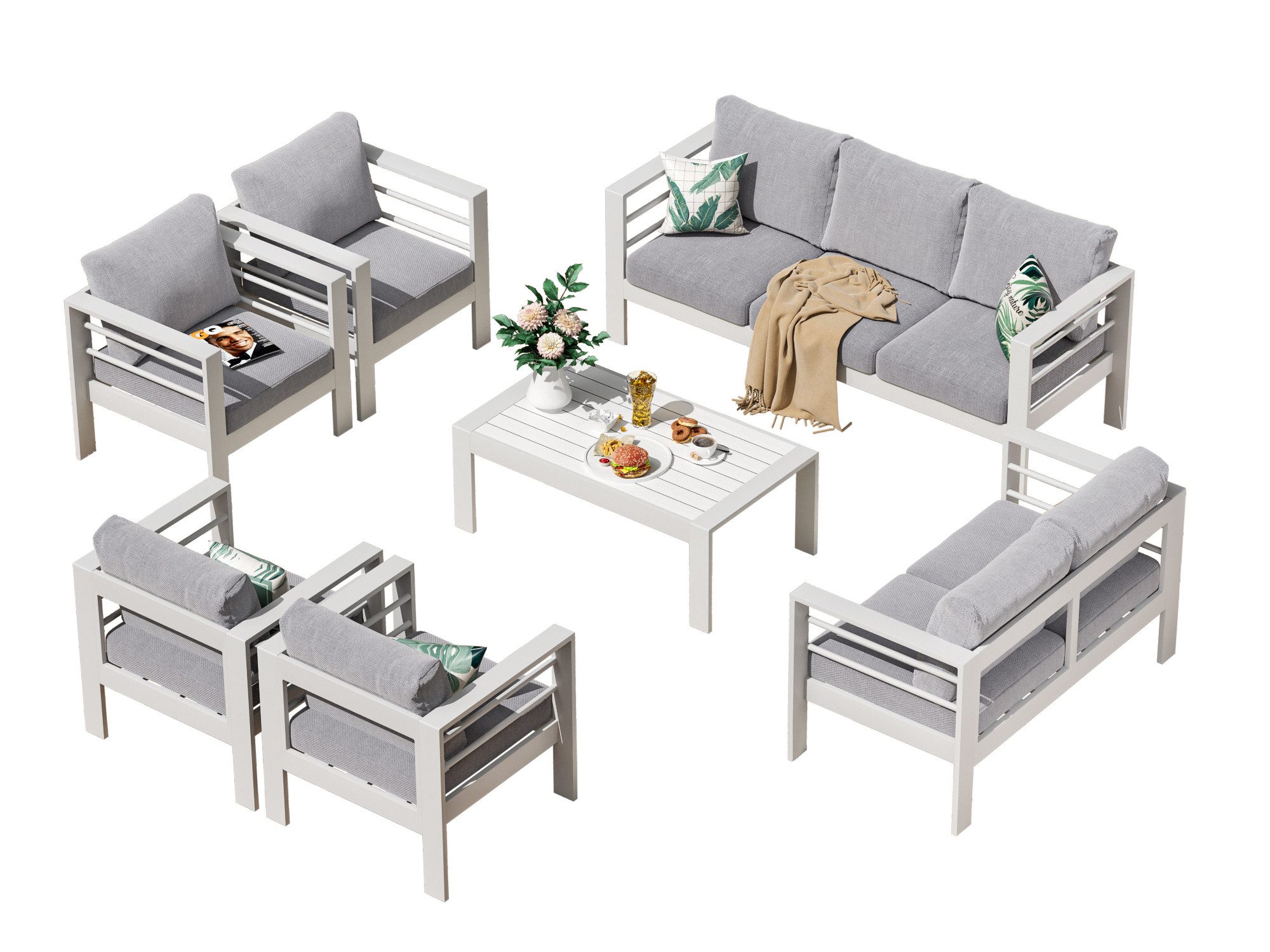 Lieferumfang | 4×Sessel, 1×3-Sitzer Sofa, 1×2-Sitzer Sofa, 1×Tisch, 18×Auflagen |