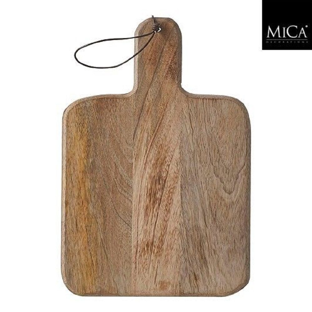 Verwenden Sie es als Schneidebrett oder zum Servieren von leckeren Snacks. Mit dem praktischen Duko Schneidebrett profitieren Sie von vielseitigen Verwendungsmöglichkeiten! Das Servierbrett ist aus FSC®-zertifiziert Mangoholz gefertigt und hat eine warme, naturbraune Farbe. Das natürliche Material macht jedes Exemplar zu einem Unikat. Der praktische Handgriff erleichtert die Handhabung und nach Gebrauch lässt es sich platzsparend mit seiner Aufhängeschlaufe an der Wand befestigen. Das Snackbrett sollte nicht in der Spülmaschine gereinigt werden: seine glatte Oberfläche lässt sich nach Gebrauch jedoch mühelos mit einem Tuch reinigen. Das viereckige Servierbrett ist in den Maßen L35 x B25 cm ausgeführt.