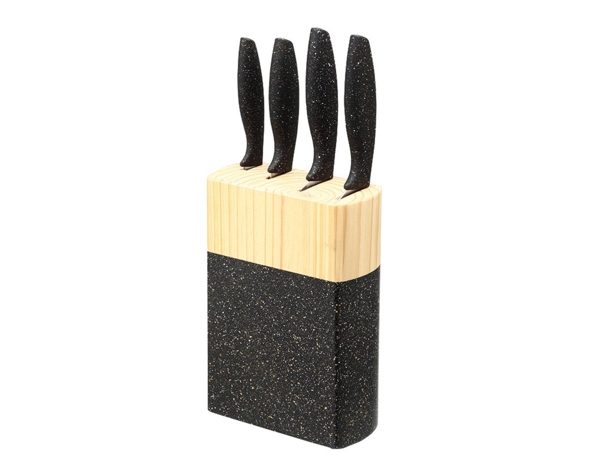 Marmorierter Kiefernholzblock: Zur sicheren und stilvollen Aufbewahrung der Messer.