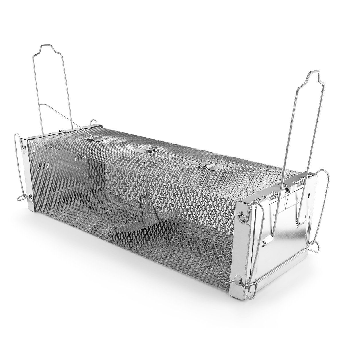 ROBUSTES UND VIELSEITIGES DESIGN — Die Kastenfalle ist aus solidem Drahtgeflecht gefertigt und ideal für den Einsatz in Garten und Haus. Ihre robuste Konstruktion garantiert Zuverlässigkeit bei der Bekämpfung von Schädlingen in unterschiedlichen Umgebungen.