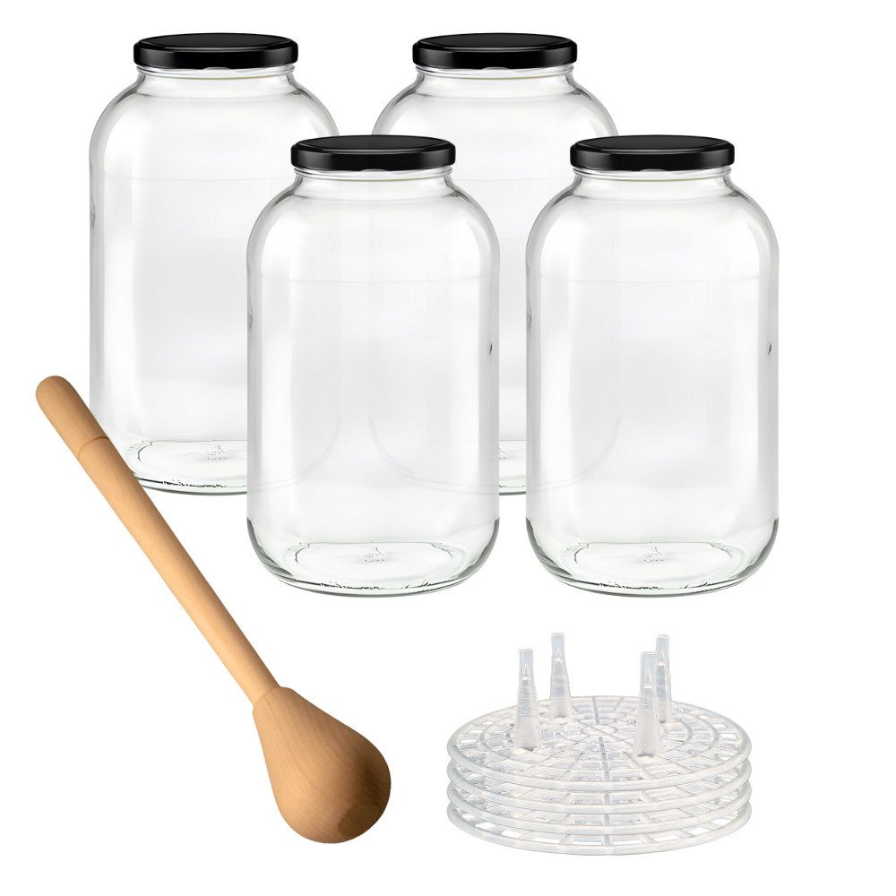 Lieferumfang | 4 Gläser, 4 Deckel, 4 Fermentiergitter, 1 Stampfer aus Buchenholz |