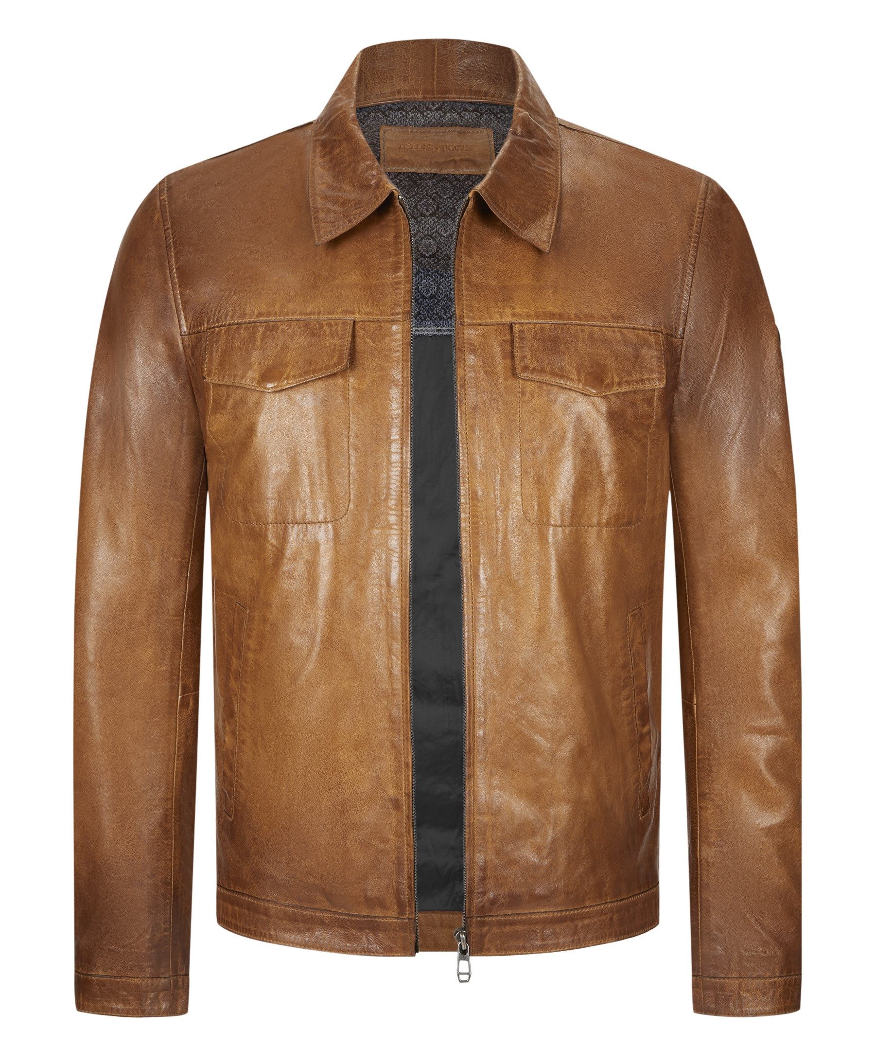 Leichte Jacke für Herren in Lammleder von MILESTONE. Dieses Modell besticht durch die 2-tone-Qualität und eignet sich dank dem angesagten Design als perfekter Alltagsbegleiter. Maskuline Optik und eine zeitgemäße Note für einen ultralässigen sportiven Look.