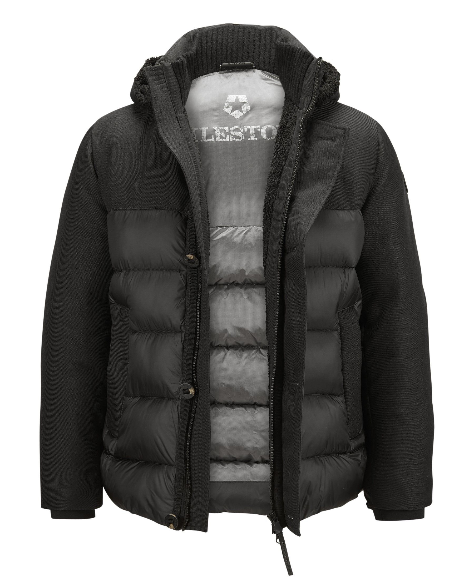 Besondere Merkmale | Materialmix in Wolloptik mit abnehmbarer Kapuze |