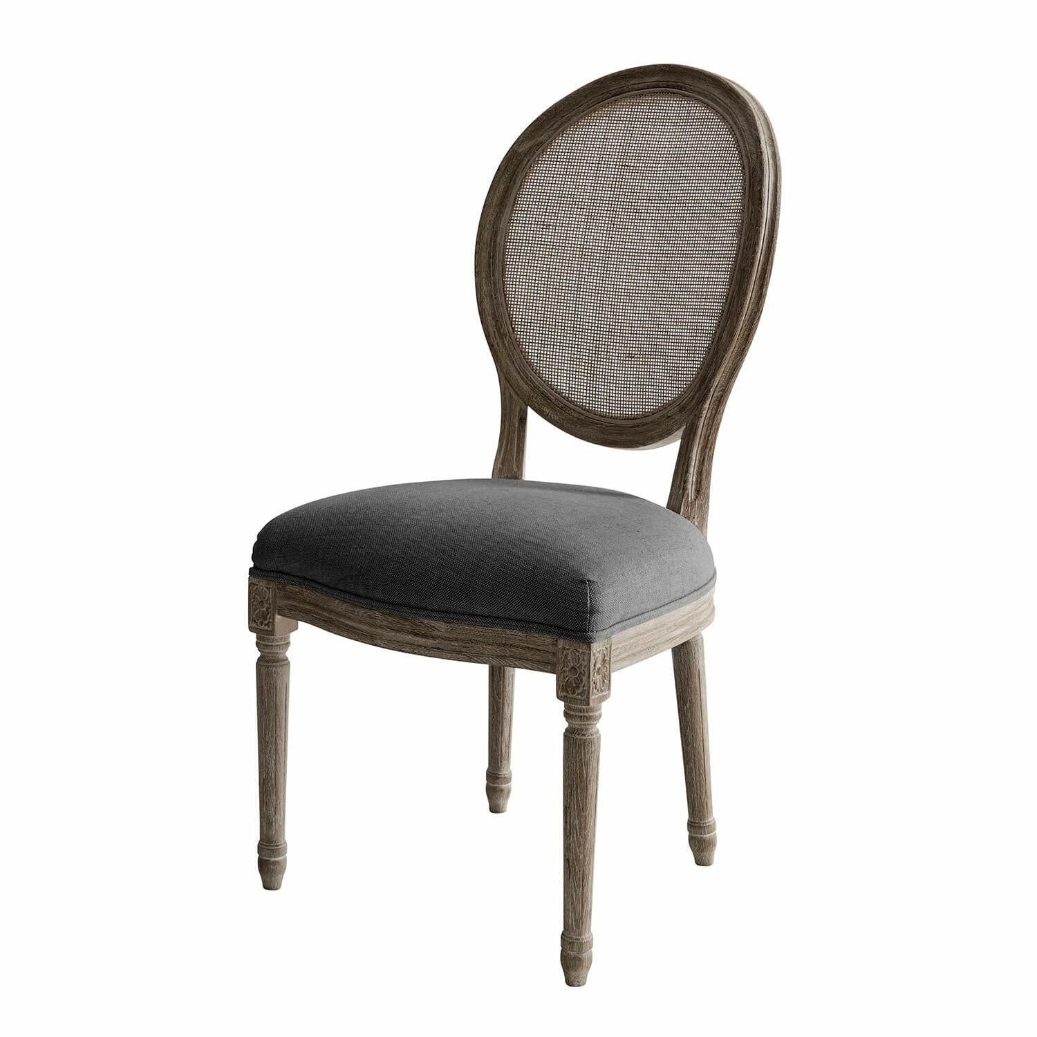 Klassischer Medaillonstuhl aus kunstvoll geschnitztem Eichenholz. Die komfortabel gepolsterte Sitzfläche ist wahlweise mit Leinen oder Samt bezogen. Die Lehne ist mit einem Rattangeflecht bespannt. Wenn elegantes Design und Komfort aufeinander treffen, bleiben für das perfekte Wohngefühl keine Wünsche offen. Der stilvolle Medaillonstuhl ist so ein Möbelstück, das Auge und Anspruch gleichermaßen gerecht wird und wunderbar zu klassischem, französischem oder ländlichem Interior passt. Das Gestell aus langlebigem und stilvoll geschnitztem Eichenholz harmoniert hervorragend mit der bequem gepolsterten Sitzfläche. Die Lehne mit ihrem feinen Geflecht rundet das Design stilsicher ab.