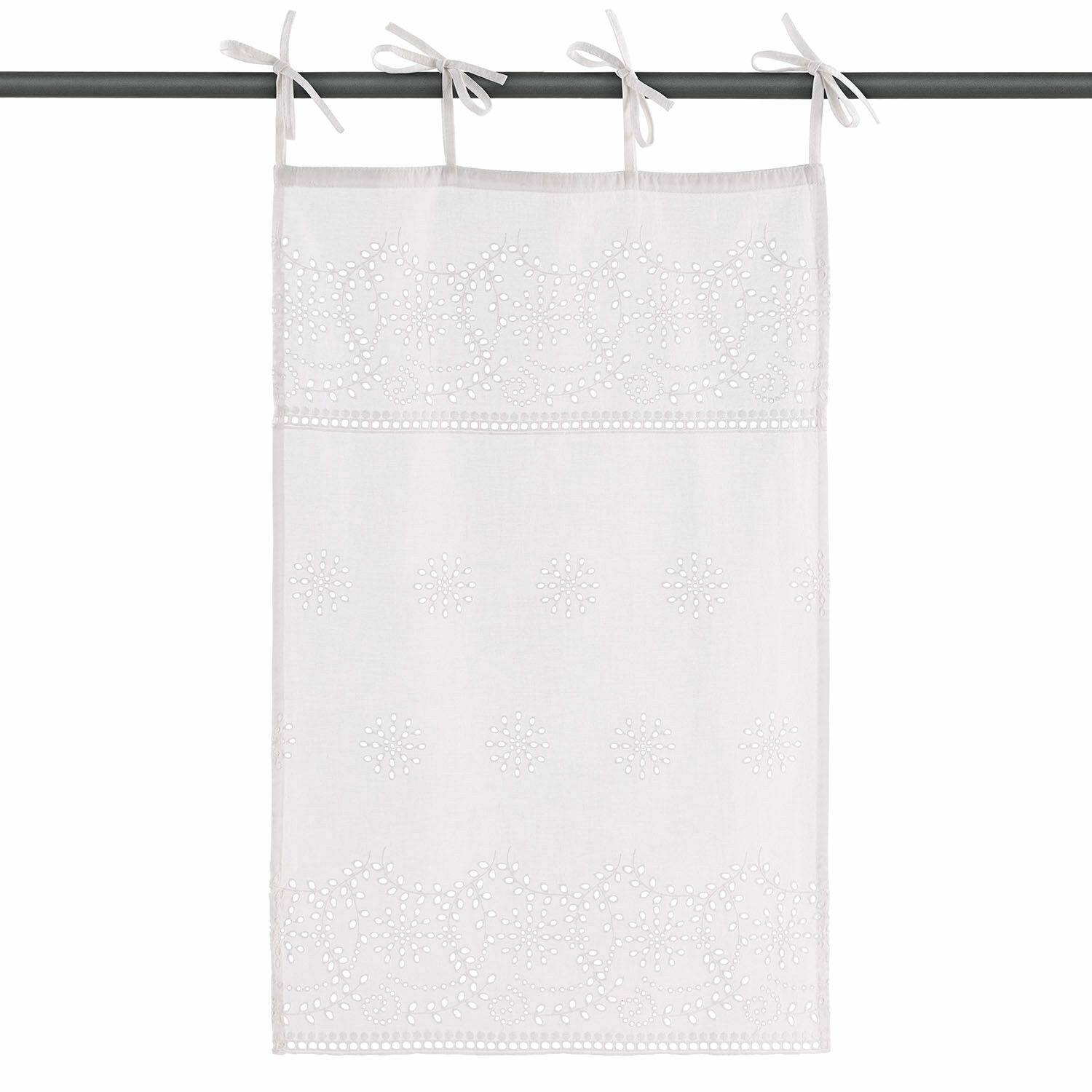 Fein gearbeitete Lochstickerei verleiht einen romantischen Touch. Mit langen Bindebändern. Hochwertiger Materialmix aus 95% Baumwolle und 5% Leinen. Diese bezaubernde Scheibengardine kombiniert die natürlichen Vorzüge von Baumwolle und Leinen mit einer zarten Lochstickerei. Die Bindebänder sorgen für eine einfache Montage, während das weiche, luftige Material sanft das Licht filtert und jedem Raum eine charmante Atmosphäre verleiht.