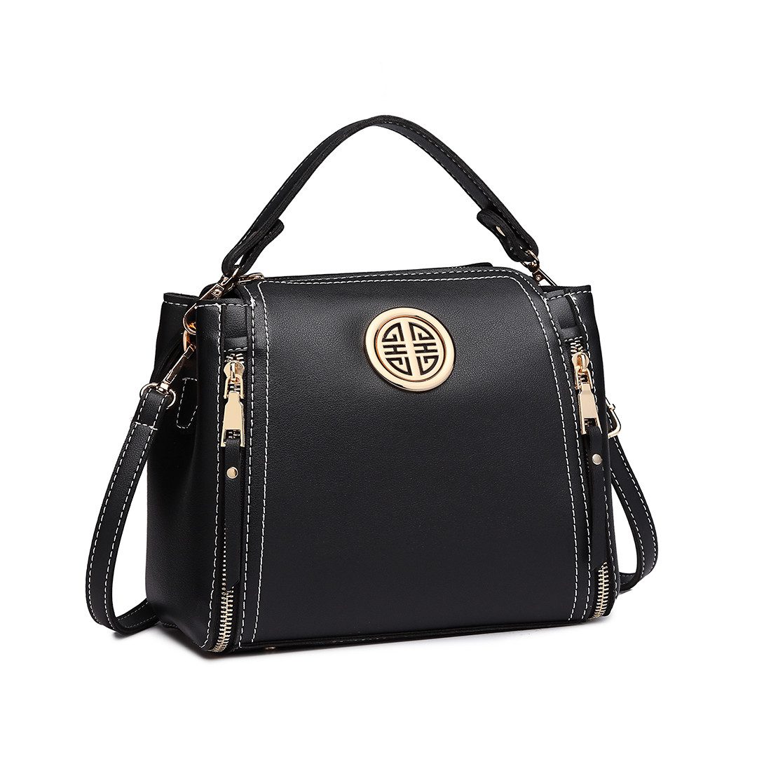 Die Tasche besteht aus strapazierfähigem PU-Leder mit einem Innenfutter aus Polyester. Die robuste Verarbeitung sorgt für eine lange Lebensdauer, während die goldfarbenen Metallakzente einen edlen Look verleihen.