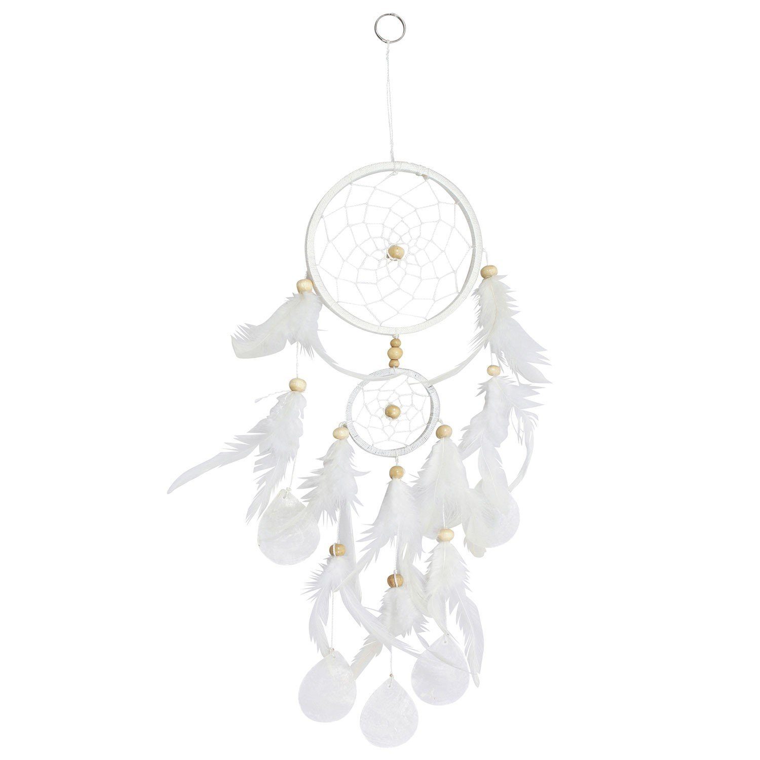 Durch die Muscheln am Traumfänger, bekommt diese Wanddeko einen sommerlichen Touch und ist daher eine ideale Dekoration für die wärmeren Jahreszeiten, Frühling und Sommer. Oder als ein warmes Detail in den kalten Jahreszeiten, Herbst und Winter.