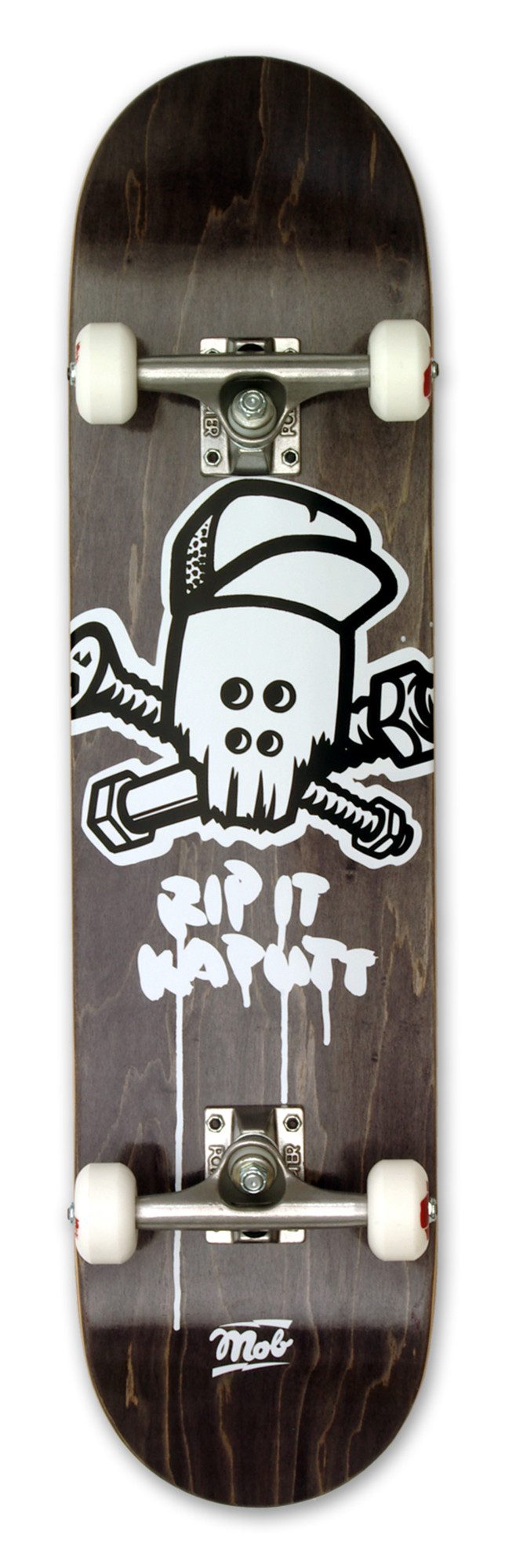 Der auffällige Totenkopf mit Schrauben als Kreuz auf der Rückseite des Decks sorgt für einen coolen Look, der sich von anderen Skateboards abhebt. Unter dem Skull findest du die Schrift „RIP IT KAPUTT“ in einem einzigartigen Verlauf, das klassische MOB-Design für die echte Skateboarder-Seele. Dieses Design wird dich beim Skaten nicht nur funktionell, sondern auch optisch begeistern.