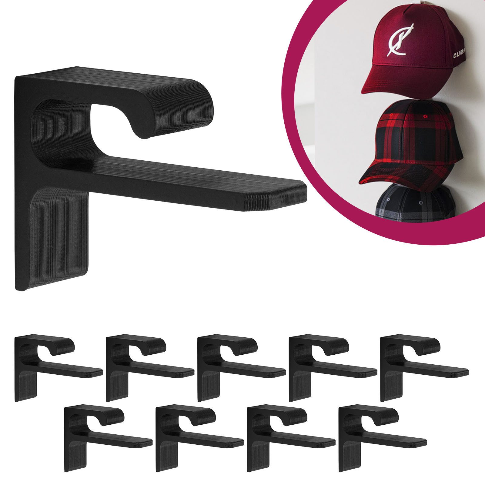 Die unsichtbare Wandhalterung ist die perfekte Lösung um all Ihre New Era Caps und Flexfit Mützen stilvoll zu präsentieren und zu lagern.